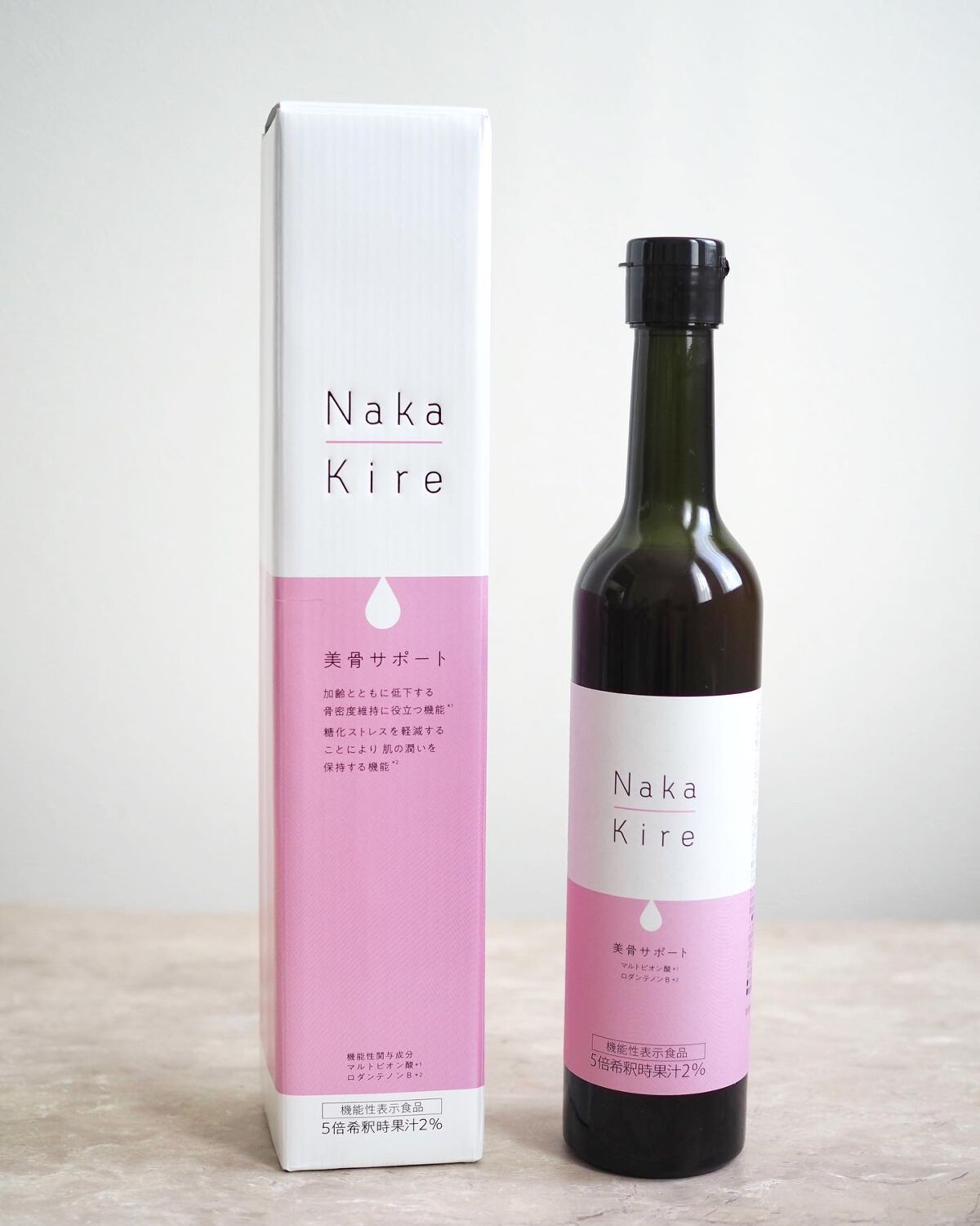 肌にも骨にも嬉しい成分「マルトビオン酸」と「ロダンテノンB」配合。 難消化性オリゴ糖「マルトビオン酸」には、加齢とともに低下する骨密度維持に役立つ機能、食事に含まれるカルシウム・マグネシウム・鉄の吸収を促進する機能、おなかの調子を整える機能があることが報告されています。 ロダンテノンBは、糖化ストレスを軽減することにより肌の潤いを保持する機能が報告されています。 とにかく飲みやすい!!!フルーティーな飲み口で酸味もあり、イヤな後味も感じることなくスッキリとした味わいです。 Naka-Kire 美骨サポートは、お水で薄めただけで美味しく無理なく飲めるのがうれしい😆