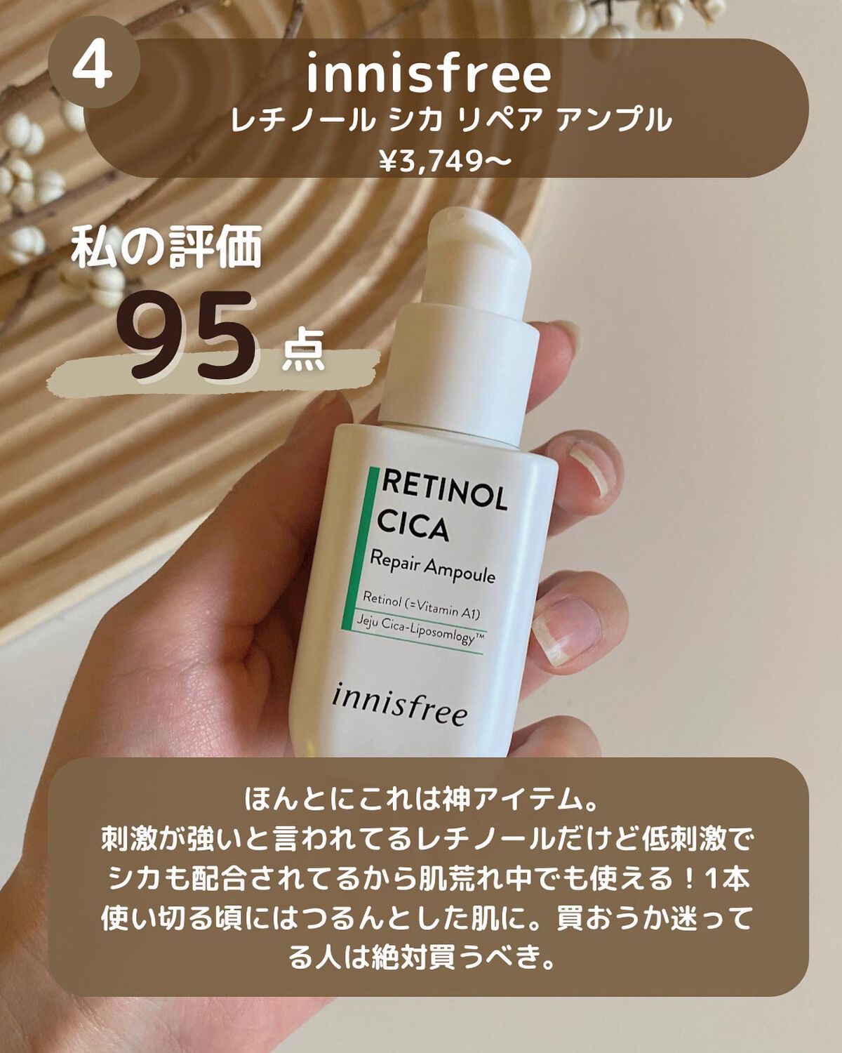 私は全然消えないニキビ跡にすごい悩まされていました🥲 紹介した中でもイニスフリーのレチノールシカは1番効果を感じました! 他の美容液ももちろん効果を感じたものなのでぜひ試して欲しいです✌🏻