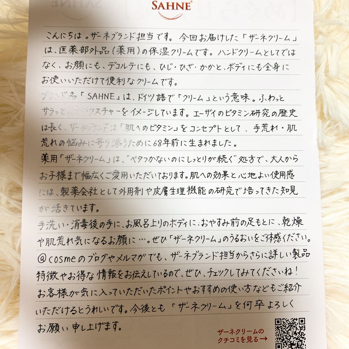 - 【医薬部外品】 おやすみ前の“ビタミンE塗り”で顔も手指もしっとりなめらかに 「ザーネクリーム」で「めぐらせ保湿」。天然型ビタミンEのチカラで肌の血行を促進し、必要な栄養素を届け、ターンオーバーを整えることで、肌をすこやかに保ちます。 しっとりが続くのにベタつかないテクスチャー。肌の刺激にも配慮 製薬会社として外用剤や皮膚生理機能の研究で培ってきた知見をベースに、肌への効果とテクスチャーの両立を追求。 クリーム基剤のノウハウを活かした処方技術により、しっとりが続くのにベタつきません。 塗ってすぐPC・スマートフォン操作や家事もOKです。 また、人の肌の構成成分や、体温で融けやすい融点をもつ成分など、肌との親和性の高い成分を配合し、肌の刺激にも配慮した処方設計です。 香りもマイルドなので、シーンを選ばずお使いいただけます。 有効成分 :天然型ビタミンE、グリチルリチン酸二カリウム(消炎成分) 効能・効果 :肌あれ、あれ性、皮フの乾燥を防ぐ、皮フを保護する、日やけ・雪やけ後のほてり、しもやけ・ひび・ あかぎれ・にきびを防ぐ、かみそり負けを防ぐ、皮フにうるおいを与える、肌を整える、皮フをすこやかに保つ