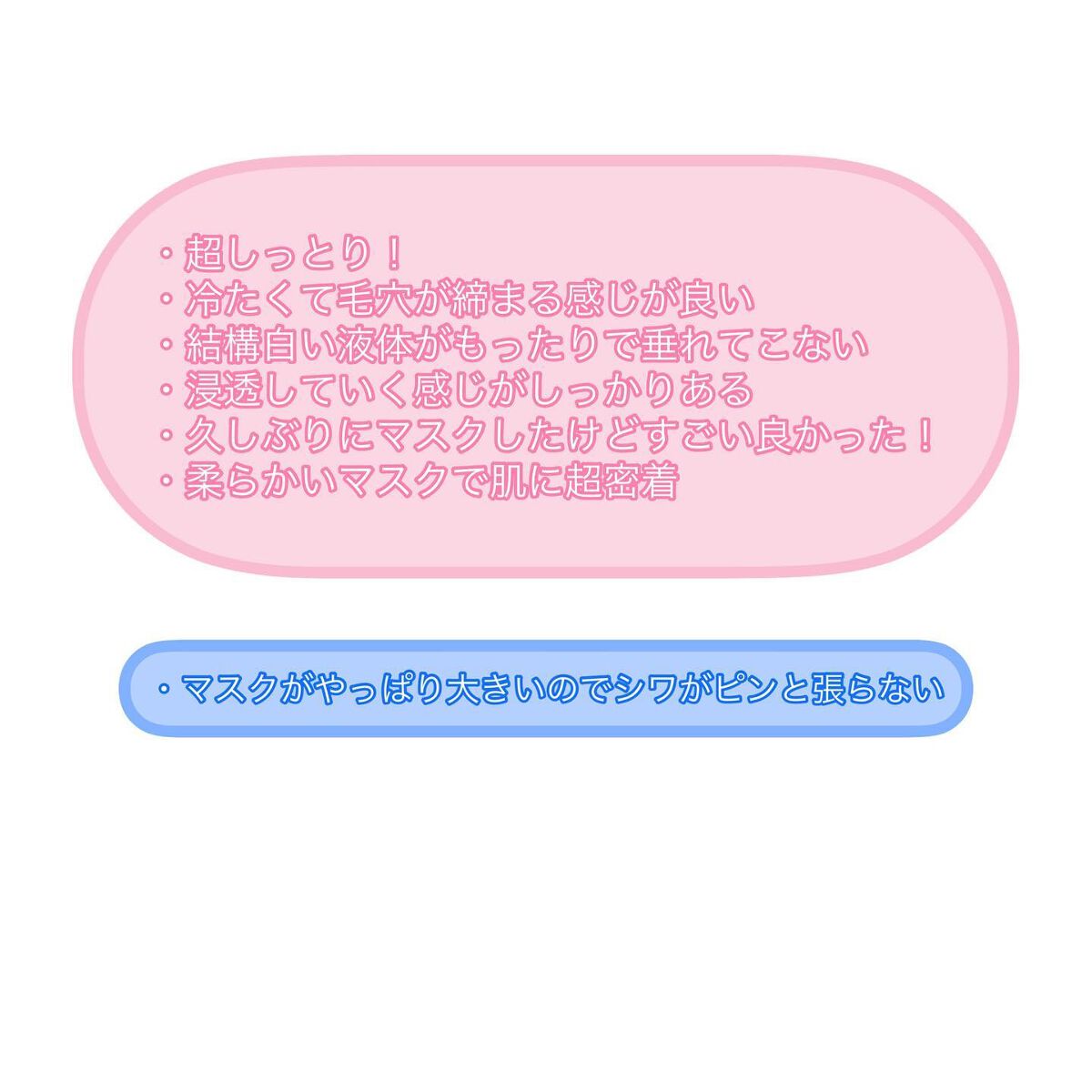 とろみのある美容液で、液だれもせず使える✨ たっぷりの美容液が入っていて、ぷるぷるっとした肌に🥺💕 ・たっぷりでとろっとしたテクスチャーの美容液は高保湿💕 ・シートがしっかり肌に密着する!! ・刺激が少ないので、肌が敏感な時でも使えそう🤭