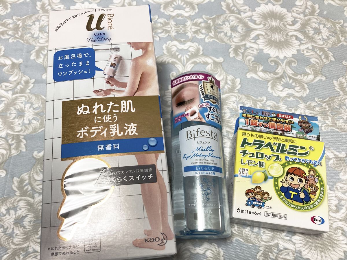 なめらか本舗リンクルUV乳液日中用乳液50g 1100円洗顔後これ1つでOKのオールインワン乳液豆乳発酵液×ピュアレチノールでうるおいとハリ アイムミミスティックシャドウシマー002ピーチコロネット1089円スティックシャドウで色は薄いベージュの様なキラキラ(ピーチ感はないかな)スティックシャドウはアイホールにめっちゃ塗ります。しかもクリームぽいからシャドウベースとしても使います。 エクセルクイックリムーバーN80ml 1210円小さくてびっくりしたビフェスタの半分くらい?ビフェスタで肌が赤くなってしまったので今ポイントリムーバーを探し中ちょっと高いからリピはないかな。パンテノール(保湿成分)配合だからこれから冬の時期には良さそう。