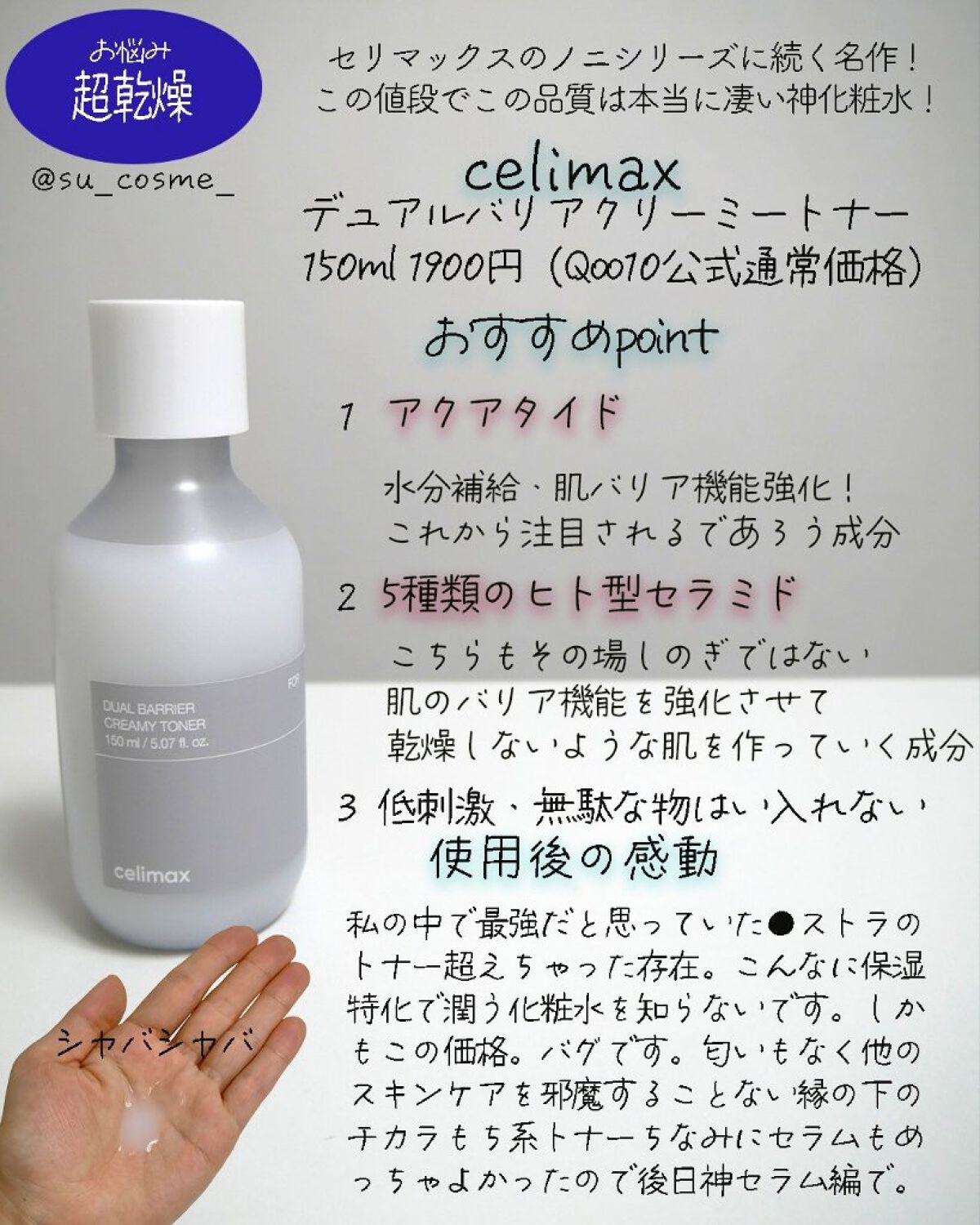 | 肌なじみよく、心地よい使用感✨ しっとりするけどベタつきません◎ | 詳細を見る | ||