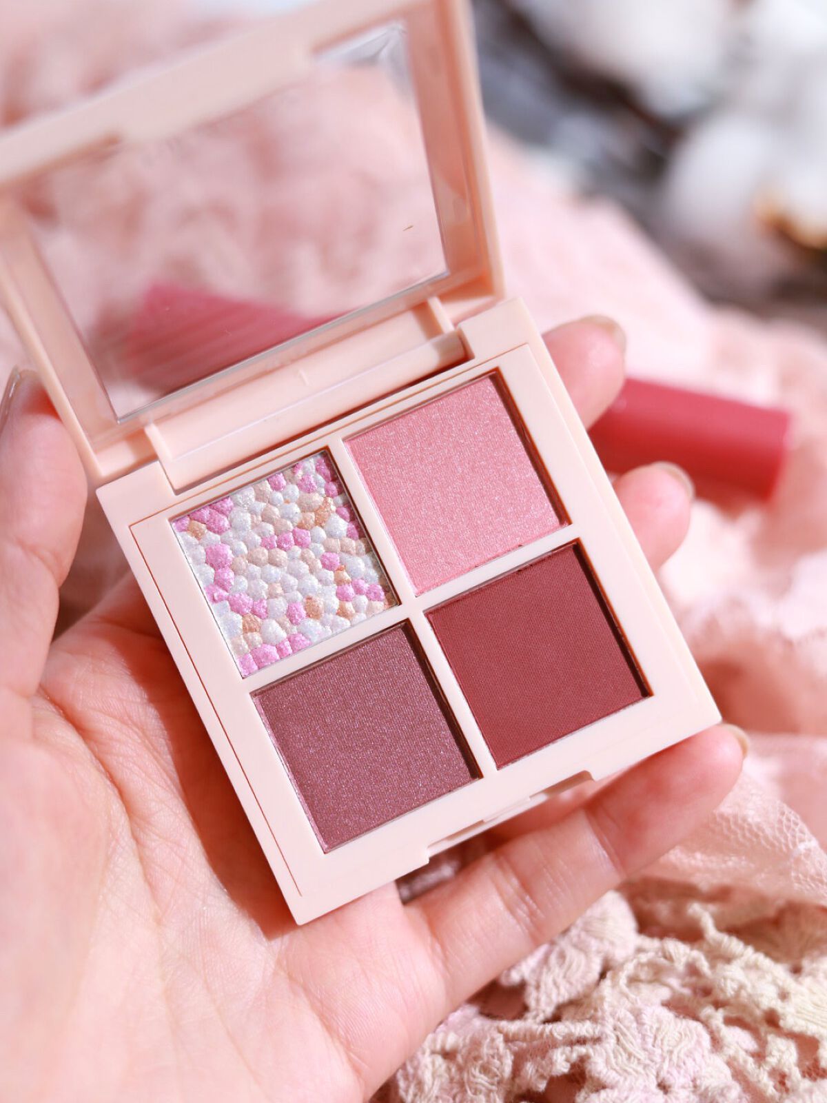 パール感や質感はプチプラとは思えないクオリティーふわふわな質感でしっとりとした濡れツヤ感が出せます。 ハイライト初心者さんはもちろん、使い分けすると色々楽しめるハイライトとなってます✨ 01 シャンパンベージュベーシックなホワイトハイライト。発色がいいのに浮きにくい! 02 パールグロウハイライト馴染みのいいピンクベージュカラーチークの上から重ね使いすると血色感もでて華やか肌質問わず馴染みやすい。 03 オーロラミントやや青みのある偏光パール入りのハイライトブルベさんが得意なカラー透明感と華やかさがこれ一つで叶う 04 シェルピンク高輝度パールがぎっしりライトなピンクで馴染みがいいです。03同様、華やかなハイライト好きさんには◎ 初心者さんが使いやすいのは01.02で、華やかさをプラスしたい方には03.04がおすすめです✨ 鎖骨がでる様子を着る時に、鎖骨部分をキラッとさすと透明感が増しますよ🧚🏻♀️なりたいお肌に合わせて使い分けてみてね💕