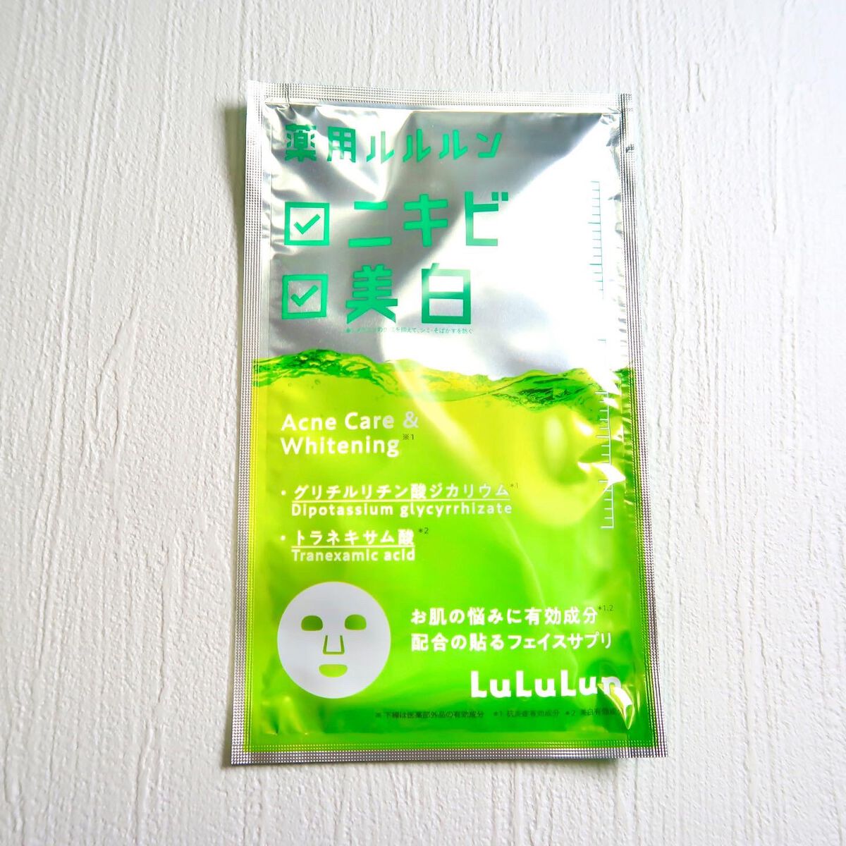 - 【医薬部外品】 ルルルン初の医薬部外品、「薬用ルルルン」が登場。 「薬用ルルルン 美白アクネ」はニキビを予防したい方、美白※1・くすみ※2をケアしたい方におすすめ。 (※1 メラニンの生成を抑えて、シミ・そばかすを防ぐ ※2乾燥による)