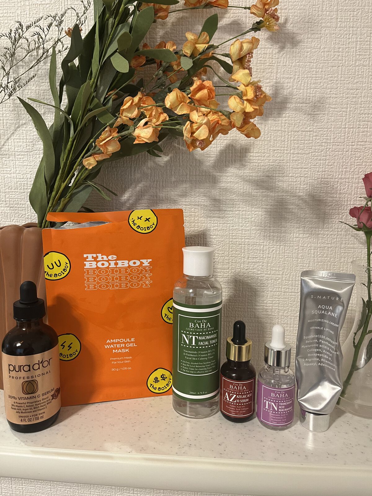 洗顔後肌美精のレチノール配合のシートマスクをしその後生理前でもあるのでティルティルのシカ配合の化粧水で保湿を狙ってビタミン配合のアンプル塗り乳液とクリームでさらに保湿をアップみたいな感じでした! 毎日スキンケアしているおかげか、一日サボっても肌は元気です☺️