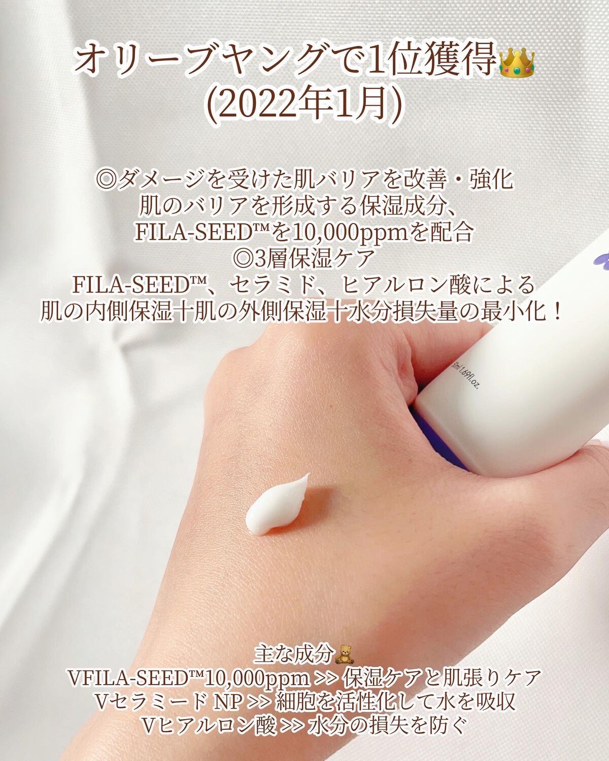 - 肌のバリアを保護し、肌を整え、保湿ケアする集中クリームです。 ☑肌のバリアを保護する保湿成分、FILA-SEED™を10,000ppmを配合 ☑素早く角質層すみずみまで浸透