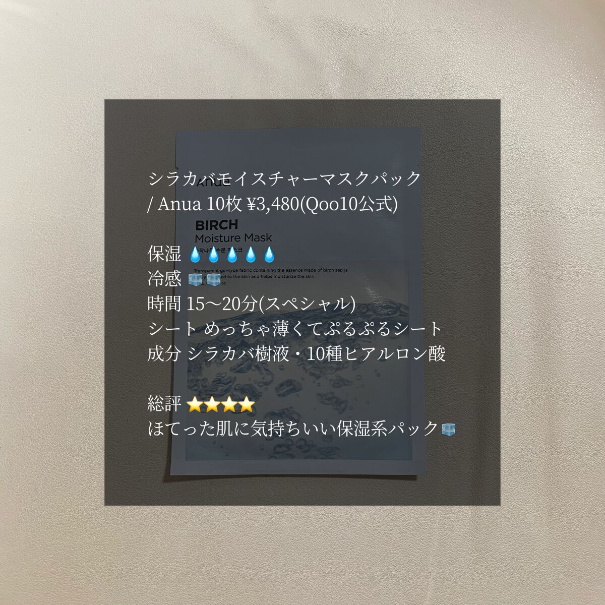 シラカバモイスチャーマスクパック【水分!】 ドクダミ77 % 鎮静マスクパックは夏、シラカバモイスチャーマスクパックは冬、その他2つは季節問わず使っています🙆♀️ 皆さんの自分に合うパック選びの参考にしてくださいね🎵