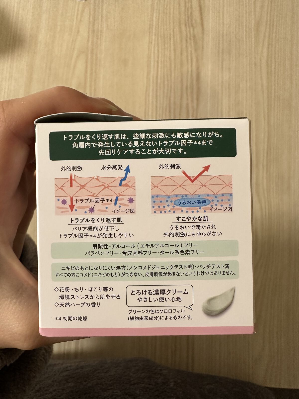 - ①W消炎成分配合 くり返す肌トラブルも集中リペア W消炎成分と3つのツボクサエキス※を配合。何度もくり返す肌あれやニキビ、乾燥トラブルを防ぎます。 ~うるおって落ち着いた肌にみちびく CICAリペア★処方~ ②全身に使える!うるおいたっぷり!とろける濃厚クリーム 顔はもちろん、乾燥しやすいからだもしっかり保湿できる濃厚なクリームです。 ③あれがちな肌にも毎日つかる やさしい使い心地 とろけるようになめらかに伸び広がる、負担感のないやさしい使い心地。 弱酸性・アルコール(エチルアルコール)フリー・パラベンフリー・合成香料フリー・タール系色素フリー・ニキビのもとになりにくい処方(ノンコメドジェニックテスト済み)※2・パッチテスト済み ※1 3つの原料のこと ※2すべての方にコメドができない、肌刺激が起きないというわけではありません。