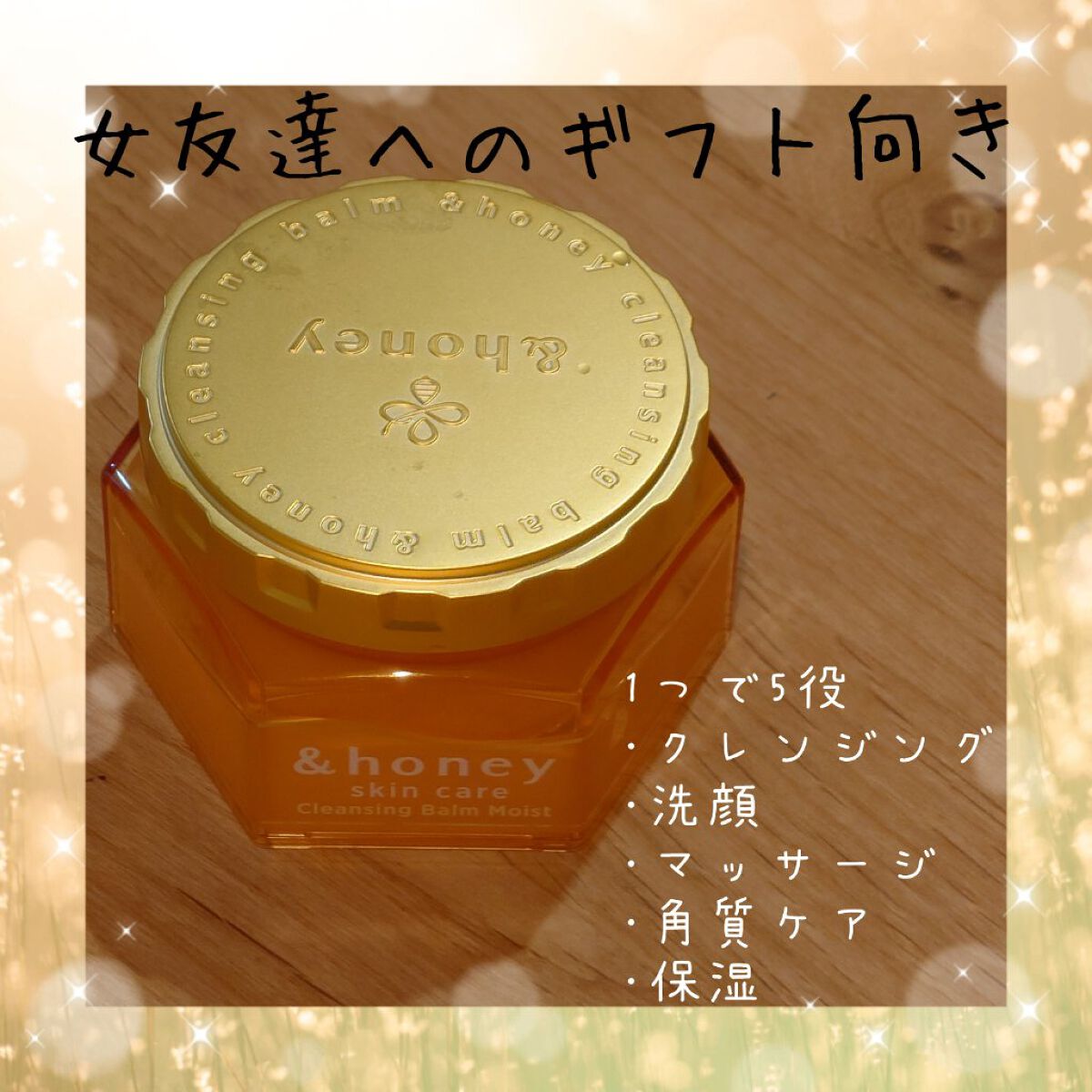 - 『&honey』から初のスキンケアシリーズ、クレンジングが誕生。 肌にうるおいを与えながら落とすハチミツ美容で、製品の90%以上をハチミツやアルガンオイル、オーガニックヒアルロン酸などの保湿&整肌成分で構成。 【クレンジングバーム モイスト】 ・ハニーモイスト成分*を配合 潤いを残しながらメイクをOFF.しっとり肌へ導きます。 ・1つで5役 メイク落とし・角質ケア・洗顔・マッサージ・保湿の5役 ・W洗顔不要。まつエクOK。パッチテスト済み。 ・無添加・フリー処方 合成着色料・パラベン・アルコール・動物実験フリー ・スイートハニーの香り *プロポリスエキス、ハチミツ(全て保湿)