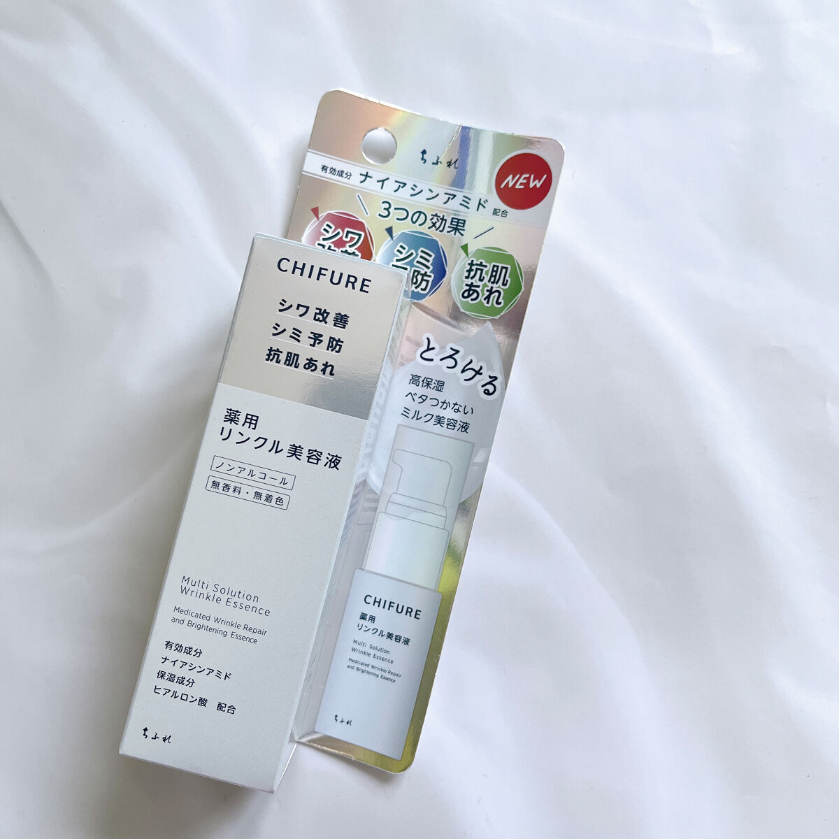 ちふれの本気。 シワ改善美容液。 有効成分 ナイアシンアミド 5% 配合 ・シワ改善 ・抗肌あれ*2 ・シミ予防*1 とろける高保湿 ベタつかないミルク美容液 乳液代わりにも使える保湿力と使用感。