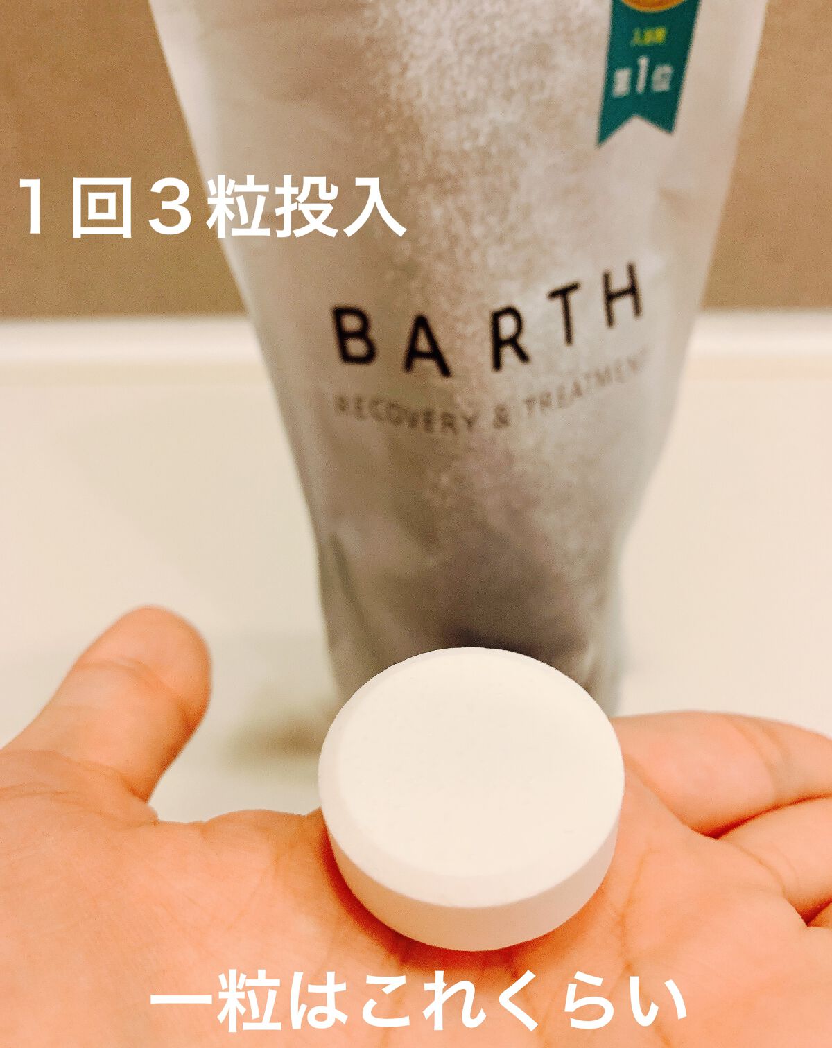 - 【医薬部外品】 ポイント① 溶け込む重炭酸イオン BARTH は独自の製造技術で、重曹とクエン酸の反応を科学的に計算されたタイミングで安定化させ、お湯を中性に保つことで 、重炭酸イオンの 8 ~ 9 割を湯中に溶け込ませることに成功しました。重炭酸イオンがしっかり溶け込んだお湯に入浴することで、有効成分が血流を促進し、疲労回復を促します。 ポイント② 自然由来のクエン酸 BARTHは、炭酸ガスを発生させるための酸を石油合成ではなく、自然生成物(でんぷん)の発酵で得られるクエン酸を使用しています。従来クエン酸は反応性が高くすぐに揮発してしまうため、重曹と配合して錠剤にすることが極めて困難だと言われてきました。 自然由来のクエン酸と炭酸ガスの組み合わせが、お肌のキメを整え柔らかくし、美肌効果をもたらします。 ポイント③塩素を中和するビタミンC配合 ビタミンCを配合したことで、一般家庭で使われる水道水の中に含まれている塩素を中和し、刺激の少ない肌触りのよいお湯を可能にしました。 敏感肌の方や、お子様にも安心してご入浴いただけます。 ポイント④無着色・無香料 着色料や香料などを一切使用せず、余計なものを削ぎ落としました。