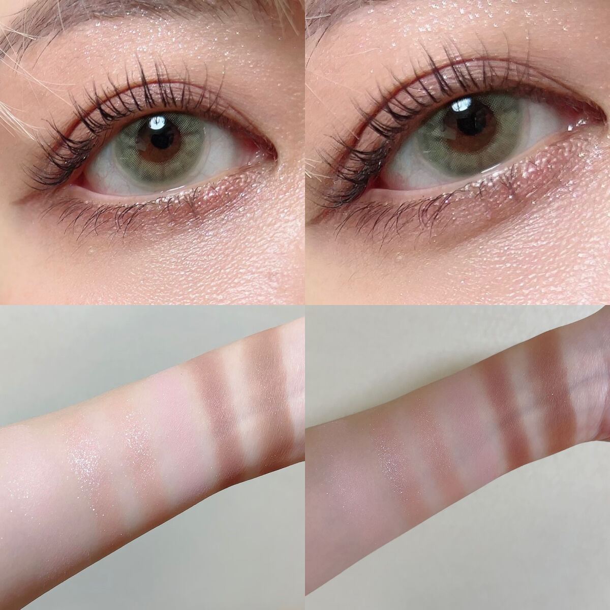 - シアーマット、シアーサテン、シアーグリッターなどさまざまなテクスチャーが入った6色構成のヴィーガンアイシャドウパレット。落ち着いたヌードベースと暗めのピンクベースがトーンオントーンで構成され、誰でも簡単にレイヤリングを楽しめます。さらには鮮やかな透明グリッターが爽やかな輝きを演出し、しっとりソフトな水分感のあるテクスチャーで、塗りやすく粉飛びなしの完璧なフィット感を実現。ほのかに優しい発色がナチュラルで美しい目元へと導きます。