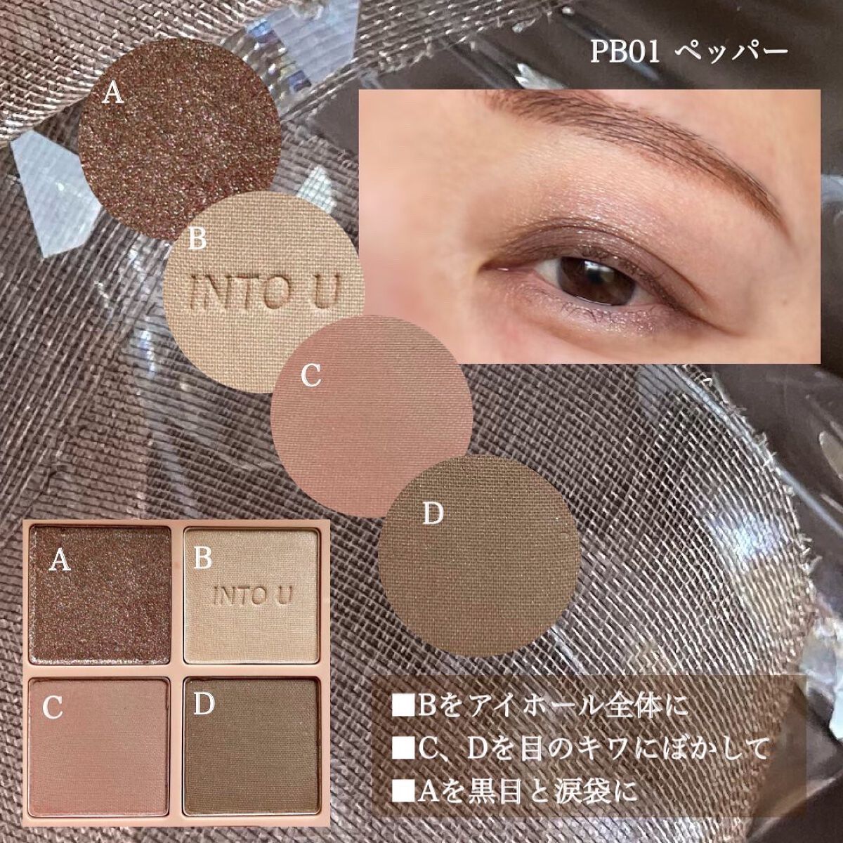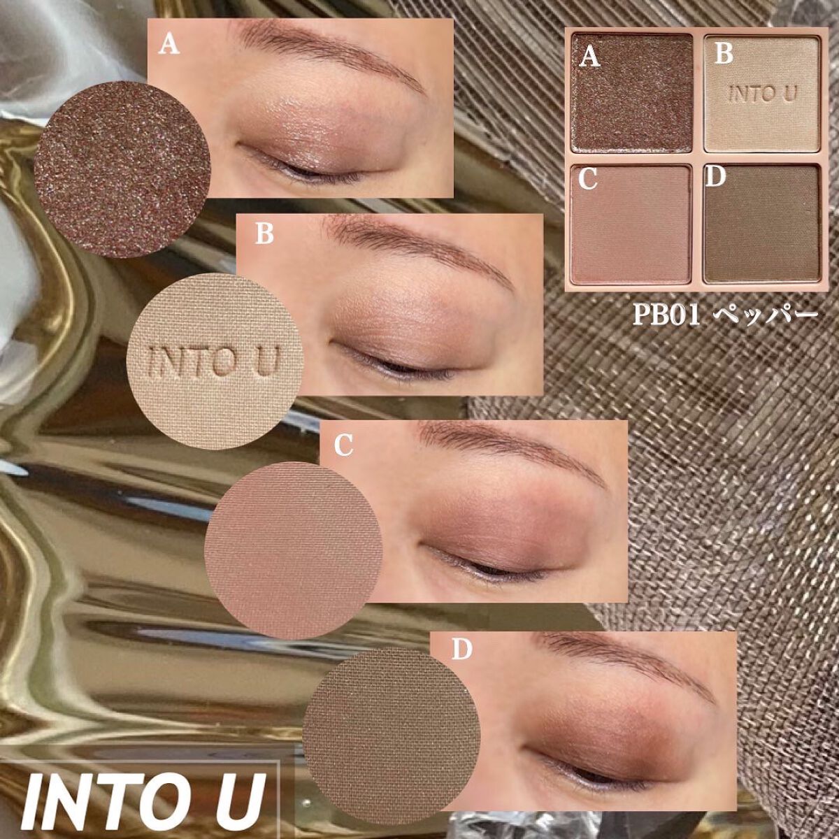 \簡単スモーキーが作れるブラウン/【INTOUテイスティングライフアイシャドウパレット】☑️BW01ヌーディーなベージュ・グレージュブラウン、締め色ブラウン+キラキラスモーキーブラウンで構成された4色パレット🎨全てマットな粉質はしっとりしてお...