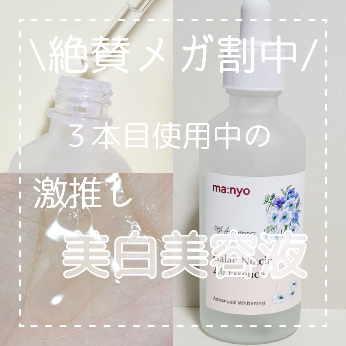 魔女工場ベストセラー美容液🎊 SNSでも良く見かけていたので気になっていました~🌟 高濃縮ガラクトミセスを93.69% 保湿成分ナイアシンアミドを4%配合。 水のようにサラッとしたテクスチャーでさっぱりとした使い心地。