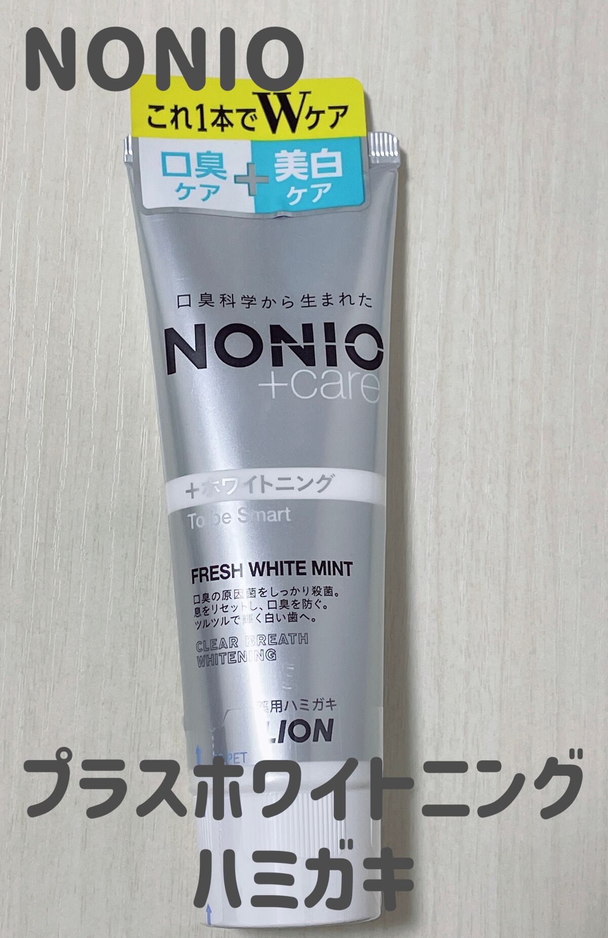 NONIONONIOプラスホワイトニングハミガキ【ホワイトニングケアの評判がよく使ってみた🦷】プチプラでいいですね!フッ素配合なのもポイントで口臭ケア美白ケアができるのもいい蓋はワンタッチ開閉ではないものの回さないでも引っ張れば抜けるタイプフ...