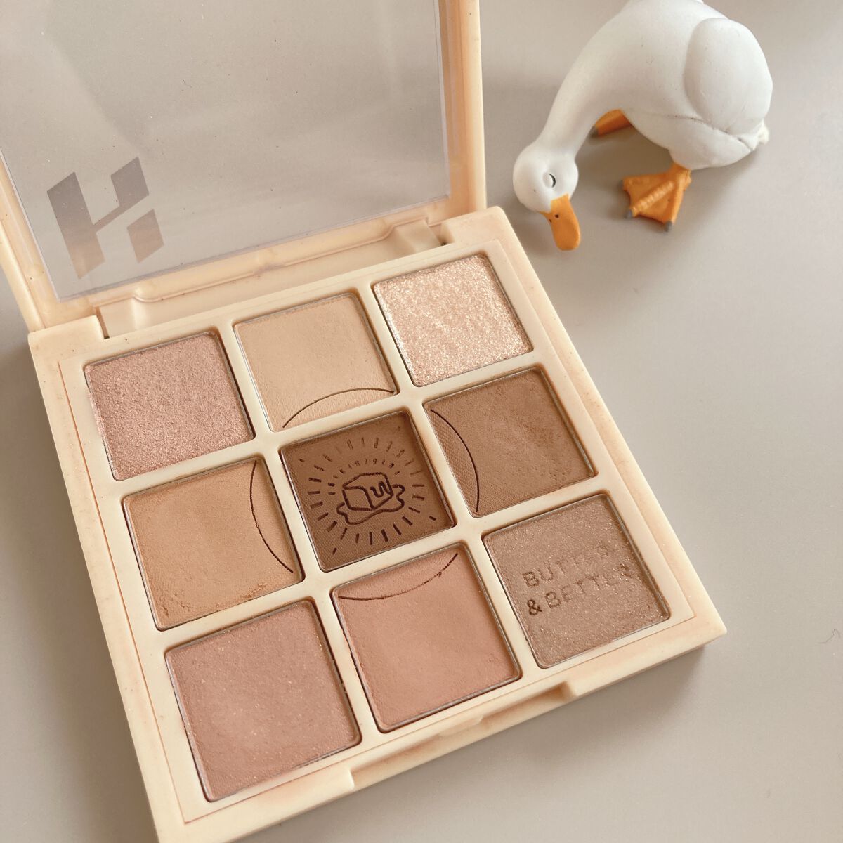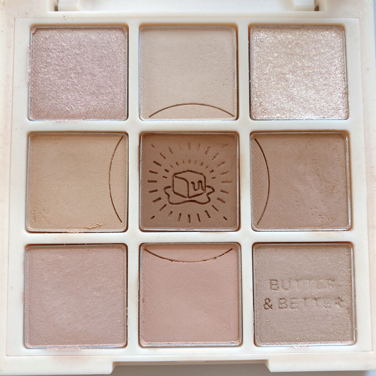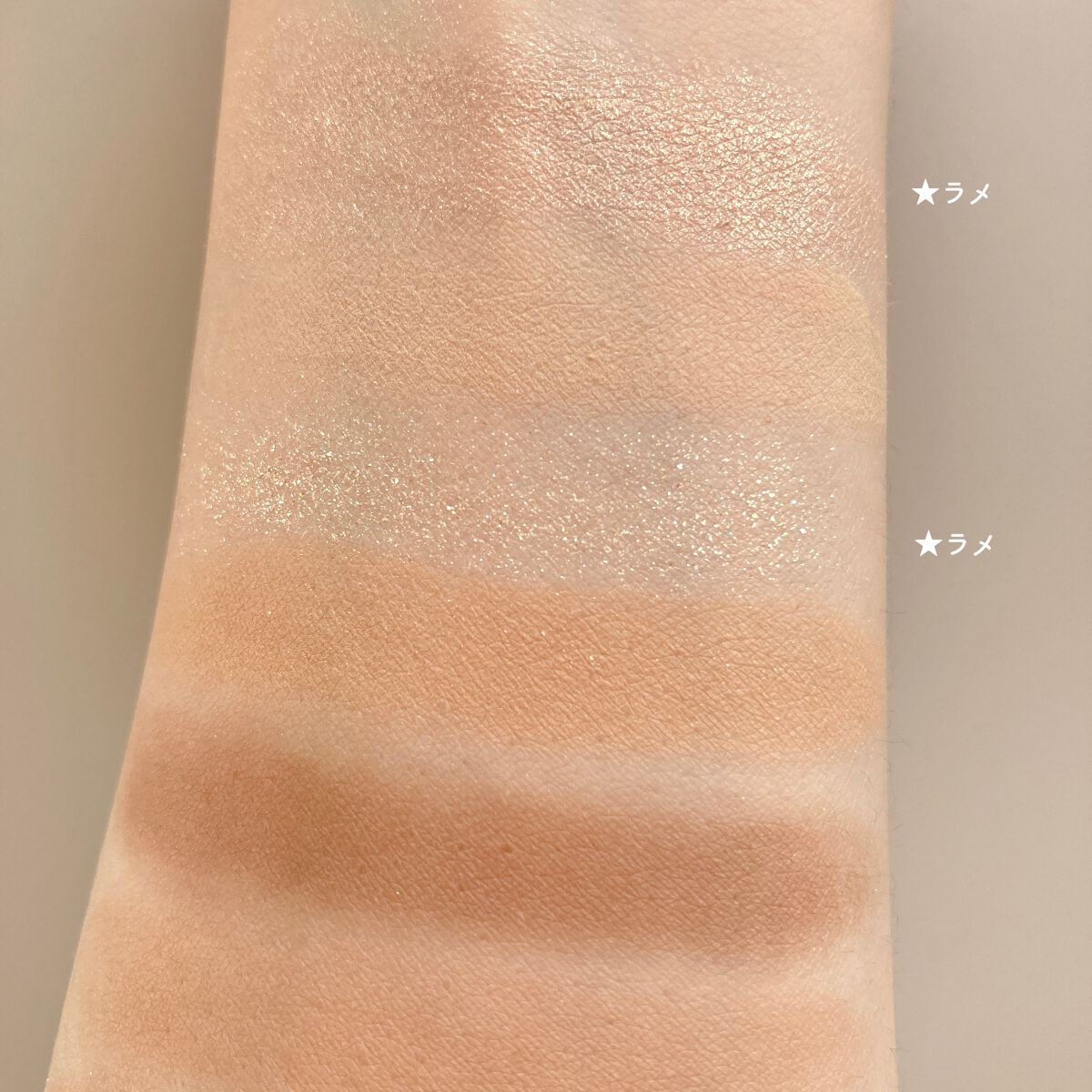 肌に密着してくれて発色もいいです!無難に使いやすいブラウンかなと思ったのですが、04は中間色が黄味によっているものから少し赤みが足されたものがあり夏から秋にかけて使いやすい色かなと思いました! ラメも可愛くてパケも可愛いのですが、懸念点は使っていくうちに真ん中のバターの柄がフラットになることと締め色が真ん中しかないので中間色しか変えられないことくらいです。 イエベさんの夏メイクにはぴったりなカラーだなと思いました!
