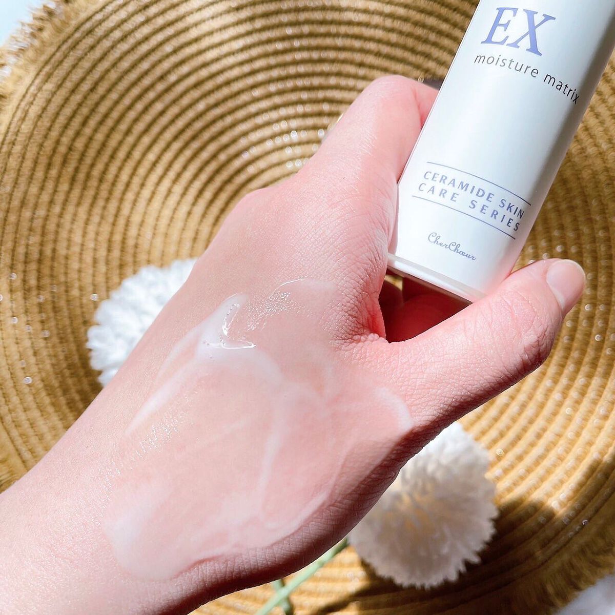 シェルシュールの“モイスチャーマトリックスNX”を使ってみたよ! プッシュタイプの容器になっていてエアレスポンプなので、いつでもフレッシュに使えるのも魅力的です。 モイスチャーマトリックスNXにはセラミドが0.75%も配合されてるんです。 乳白色のとろっとした、乳液みたいなテクスチャー。 もちっとして、しっとりする、すごくリッチな使い心地です。 ベタベタしないのでお肌にも心地よいよ! オールインワンとしても使えるほどなんだけど私は美容液として使っていますよ〜。 乾燥肌や敏感肌さん、アトピーさんにも是非使ってみてほしいスキンケアブランドです♥ 今、日焼け止めも使っているよ〜!!