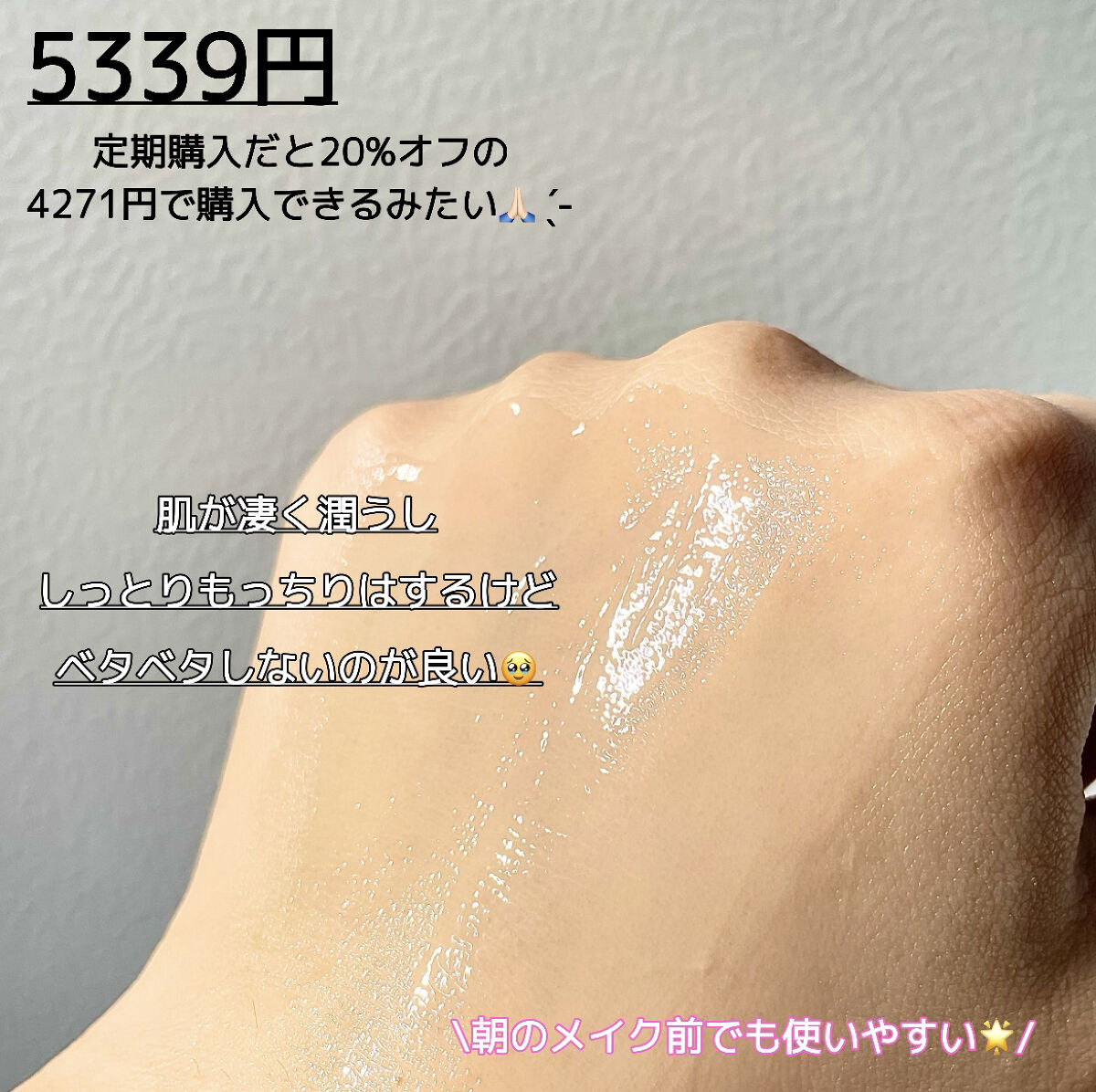 | ベタつかず、肌がしっとりと潤い感があって乾燥しにくくなった♪ | 詳細を見る | ||