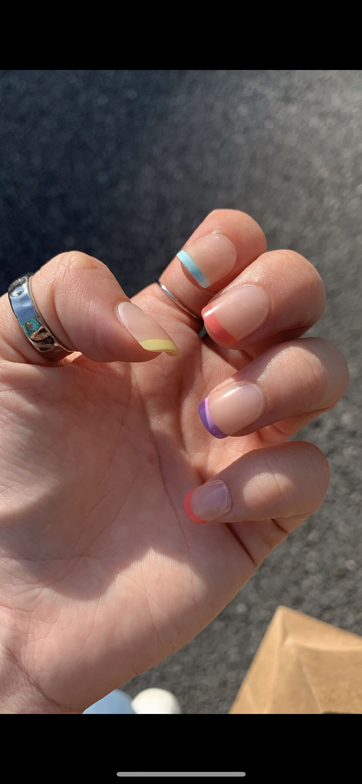 このDASHINGDIVA MAGICPRESSはすごくて 何日も取れない!二週間余裕で取れなかった かといって全ての人がずっとネイルしてていいわけじゃないし、ネイルサロンへ行ったら4000-10000円ちょっとは取られてしまう 私学校がネイルだめなので、できる期間が夏休みしかなくて、しかも入院することもあってネイルはダメなのでネイルサロンに行くことは断念して、そんな時に見つけたのがDASHINGDIVA MAGICPRESSだったんです✨ すごすぎませんか?、写真の親指、小指少し浮いていますけど、これ付けっぱなし一週間経ってます! 逆に取るときに時間かかる笑笑 ポイントとしては自爪を切る!! 爪表面の凹凸をとる!油分を無くす!!