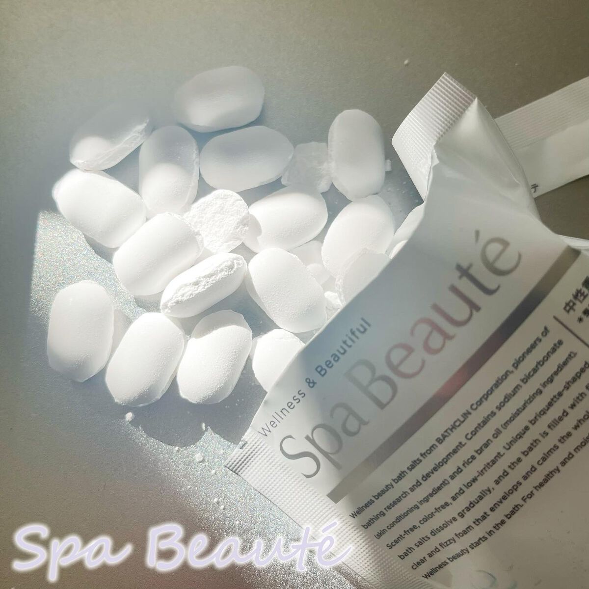 バスクリン SpaBeaute50g×3包ウェルネス発想の美容入浴料☁️独自のブリケット剤なので、きめ細かい炭酸泡なのが特徴です🫧☑︎重炭酸Na* *整肌成分☑︎米ぬか油(保湿成分)配合☑︎無香料・無着色白いコロンとしたタブレットが小袋に何...