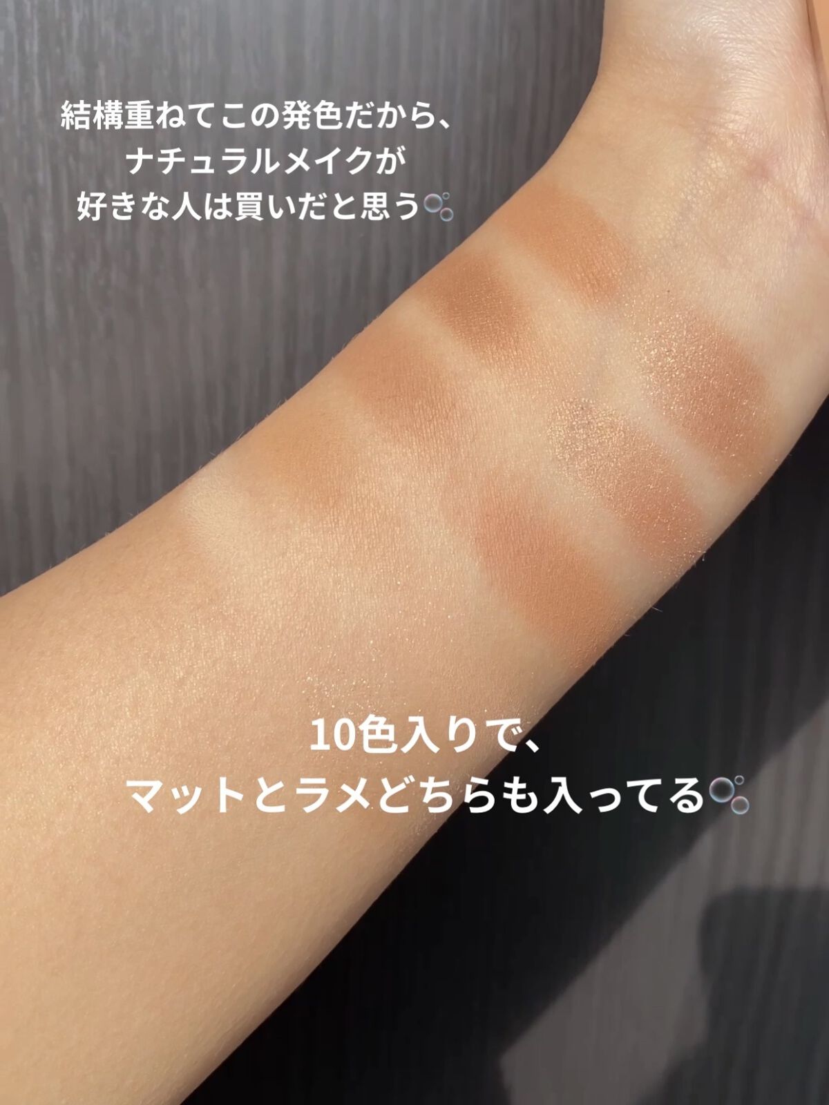 肌トーンに合わせて自分に似合うトレンドカラーが楽しめる、捨て色なしの10色アイシャドウパレット。 上品な色っぽさと可愛らしさを叶えます。ほんのりコーラルがかったバラ色のアイシャドウを重ねれば、透き通るように煌めくまなざしが完成。 肌なじみのいいコーラルピンクカラーのパレットで、イエベさんに特に似合うと思います🍊