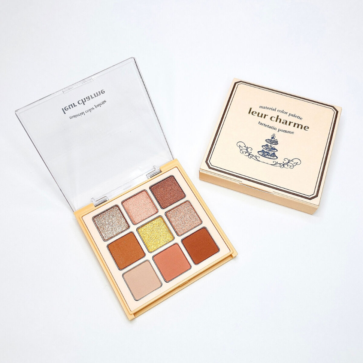 - 「ときめいて、私の瞳。」というキャッチフレーズの下、発色と質感にこだわった日本製9色アイシャドウパレット「leur charme material color palette(ルルシャルム マテリアルカラーパレット)」。2種展開で、どちらも個性的なカラーを入れつつ、絶妙な色合いやラメの使い方によって、パーソナルカラーにとらわれることなく好きな色を楽しめる構成となっています。