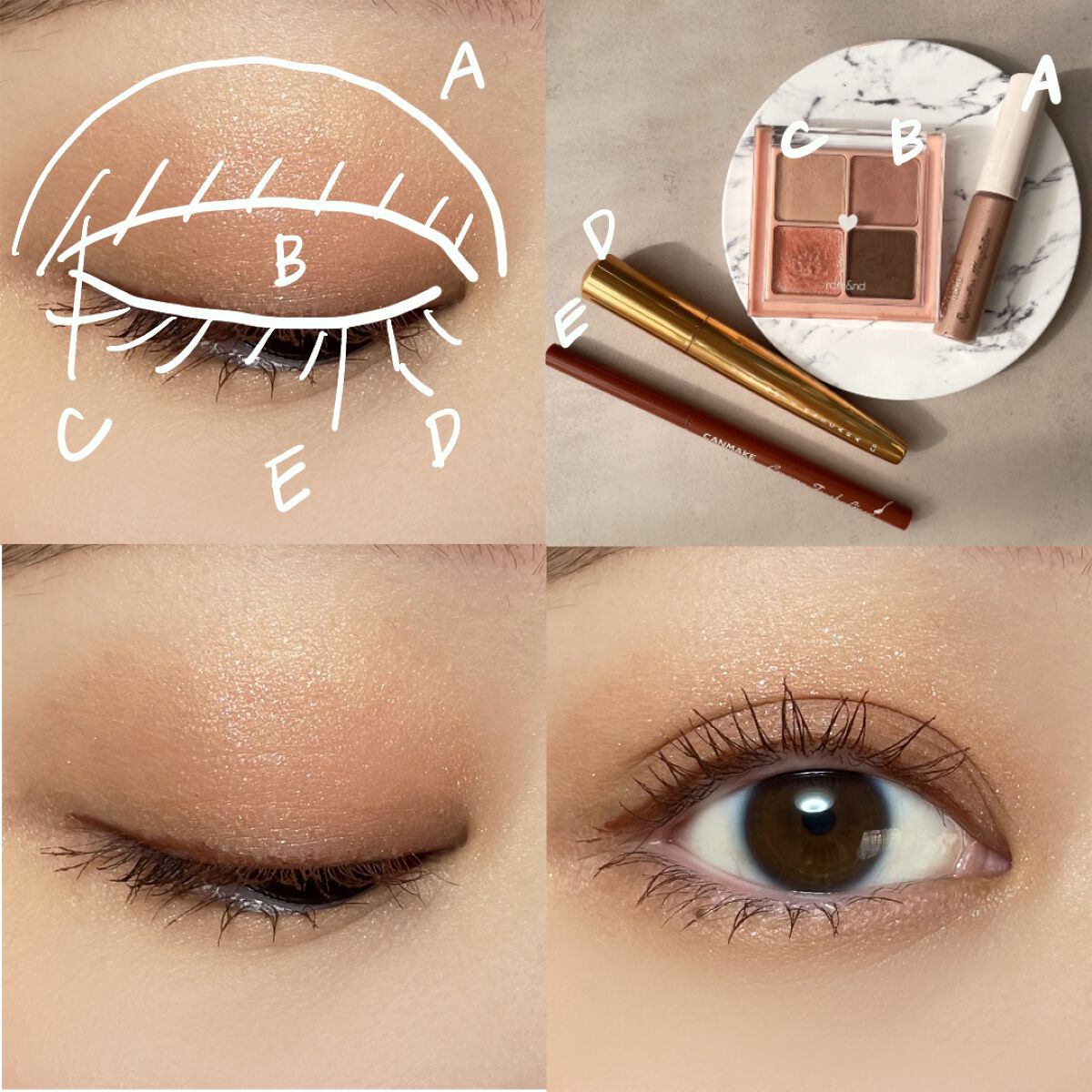 まず色の透明感に驚く! 右上のベージュは、まぶたに馴染むのに綺麗に明るく魅せるカラーでベース仕込みにぴったり✨ 左のラメ2色は言葉はいらないよね。 誰が見ても可愛いと言うだろう、ダイヤモンド並みの輝きを放つラメ✨✨ 右下のブラウンは これもかなり透明感のあるカラー! しっかりめに塗っても濃くなりすぎないカラーで 締め色が苦手な人も塗ってみて🥹 思ってた以上に可愛いアイパレで 大大大満足!!!