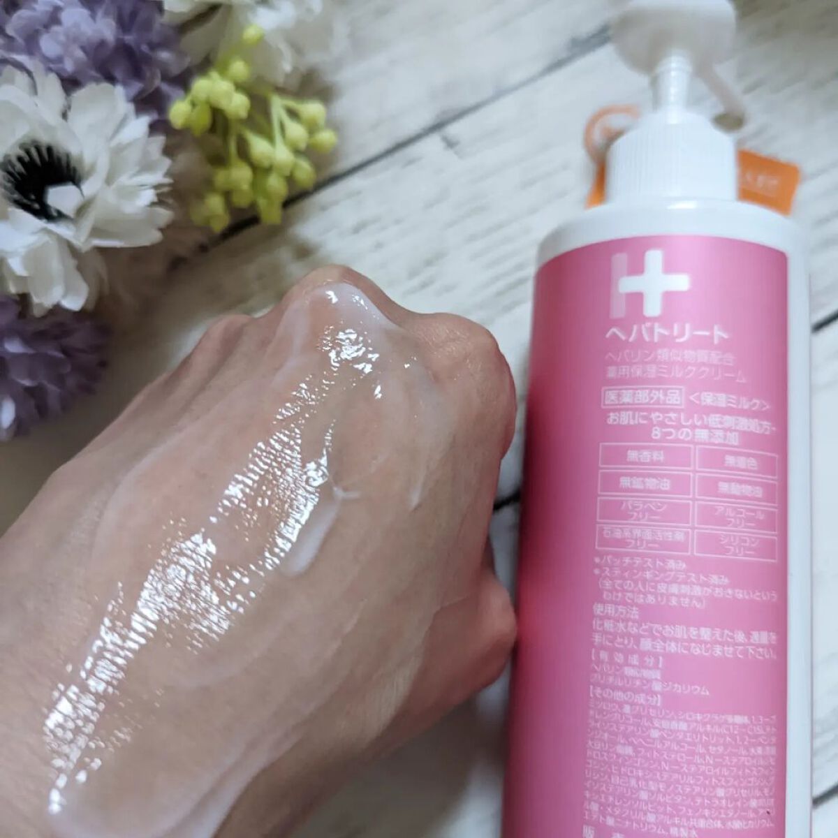 ヘパトリート薬用保湿ミルククリーム保水有効成分「ヘパリン類似物質」が肌の水分保持機能とバリア機能を高め、肌あれ有効成分「グリチルリチン酸ジカリウム」が肌あれ·ニキビを防ぎ、キメを整えてくれる✨敏感肌でも使える低利激処方8...