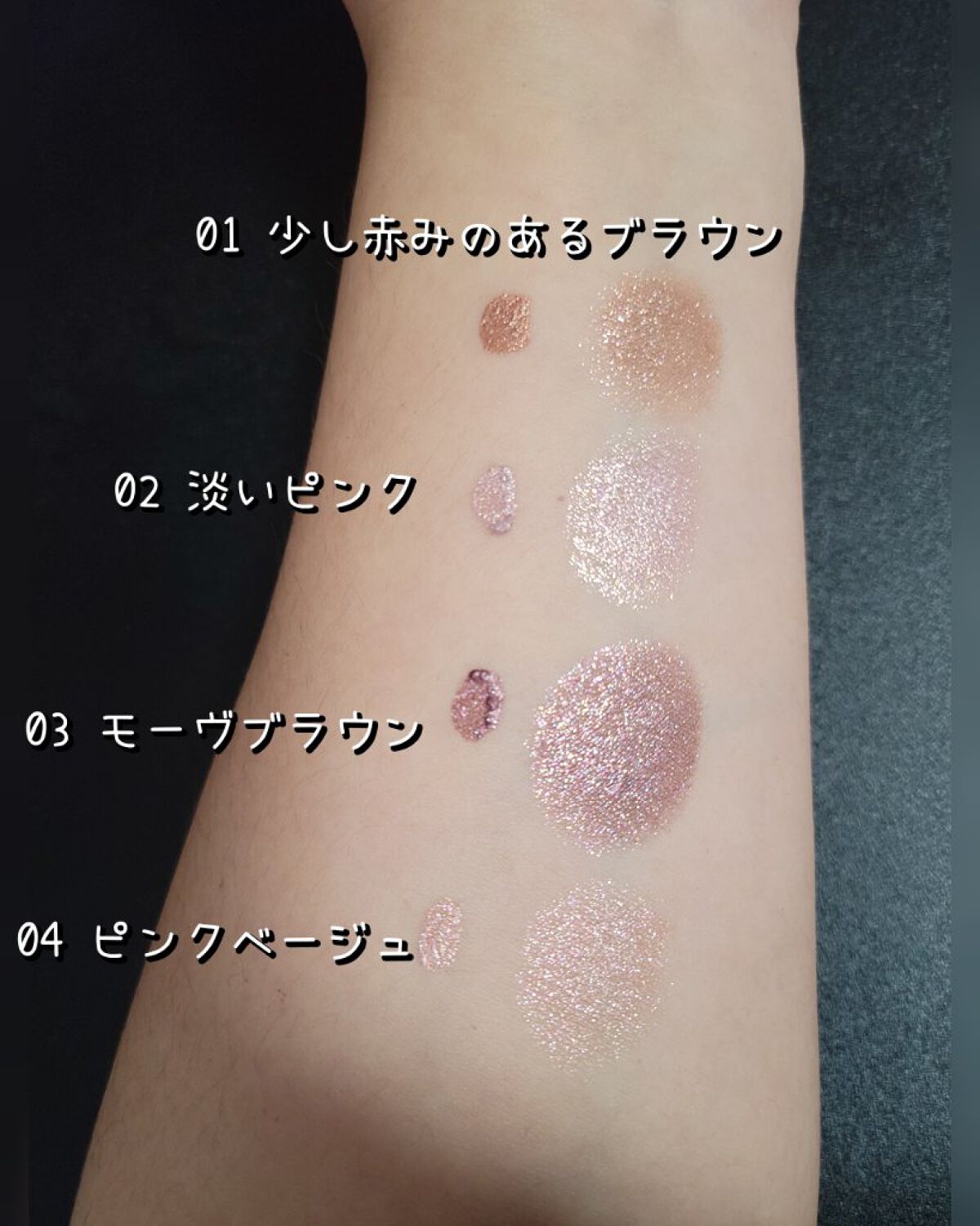 - リッチな輝きが長時間続く サラサラ仕上げのリキッドアイシャドウ 塗り心地はみずみずしくなめらかなのに、伸ばしていくうちにサラサラに変わる 魔法みたいなリキッドアイシャドウ♡ 速乾だからヨレにくく、ふたえのラインにたまりにくい! リキッドアイシャドウならではの輝きが長時間続きます。
