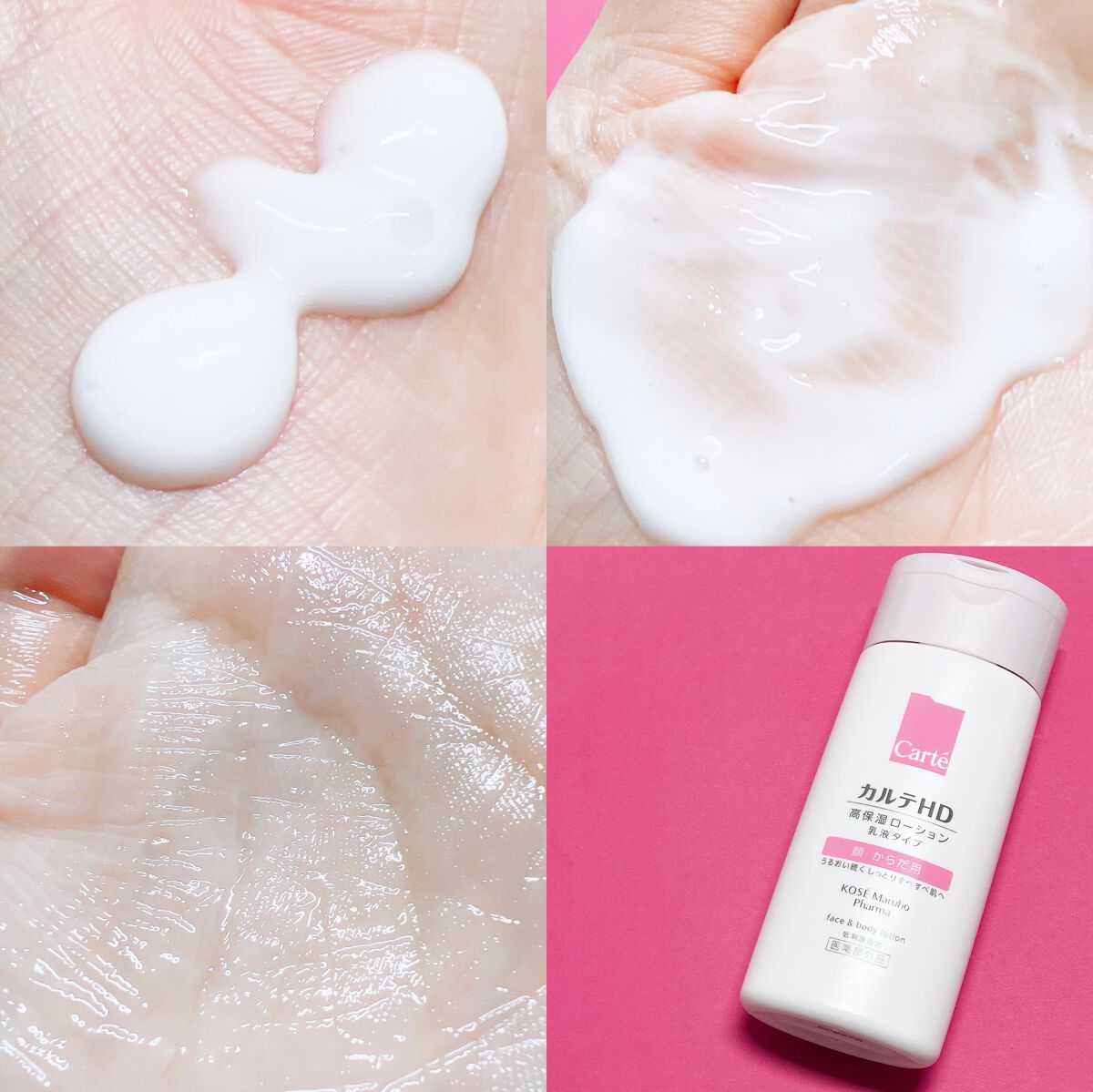 - 【高保湿フェイス&ボディローション】 顔にもからだにも。しっとりやわらか肌つづく。 信頼の保水有効成分「ヘパリン類似物質HD※」配合、低刺激処方の高機能フェイス&ボディローションです。 ヘパリン類似物質HDが、気温・湿度の変化で乾燥しやすいからだの肌のうるおい構造(角層ラメラ)を立て直し、しっとりやわらか肌に導きます。 2種のこだわりオイル配合で、しっとりするのにべたつかず、なめらかにのびひろがる使用感。敏感な肌でもまさつによるストレスがなく、全身をうるおいで満たします。 カルテHDシリーズとしては初めてお子さま(3歳以上)にもお使いいただける商品。 ・ボトルタイプ(220mL) ・ポンプタイプ(410mL) ・つめかえ用(370mL)の3種でラインアップ。 ご自身の保湿に、ご家族や大切なかたの保湿に。みずみずしくなめらかなうるおいが全身を包み込むフェイス&ボディローションです。 ※保水有効成分ヘパリン類似物質のこと <販売名:HD フェイスボディL>