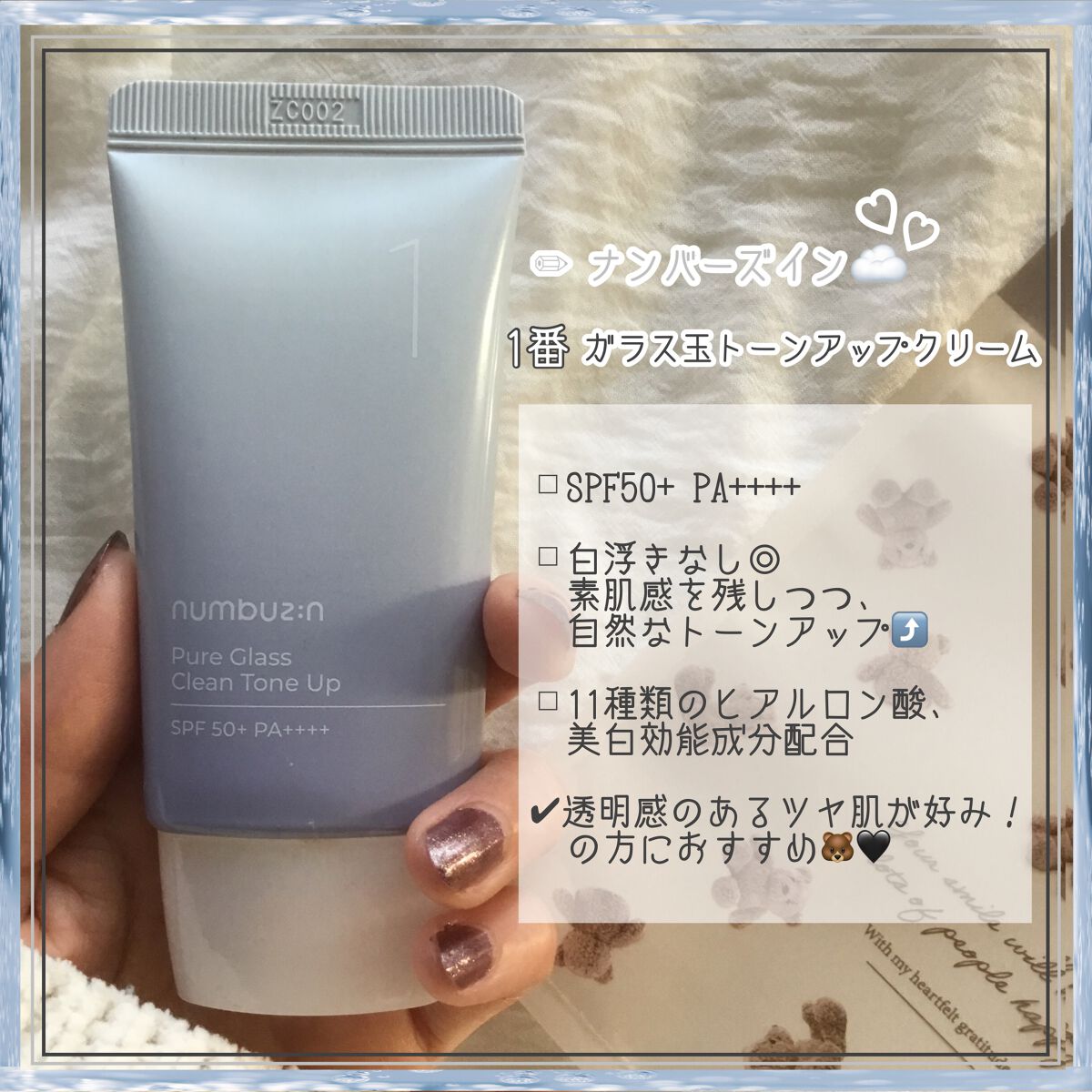 ܰnumbuzin(ナンバーズイン)1番ガラス玉トーンアップクリームܱトーンアップをしたいけど、何を使ったら良いんだろう…?そんなことを考えながら、ドラッグストアで見つけた商品。普段はプチプラコスメで1,000円を超える下地を買ったこと...