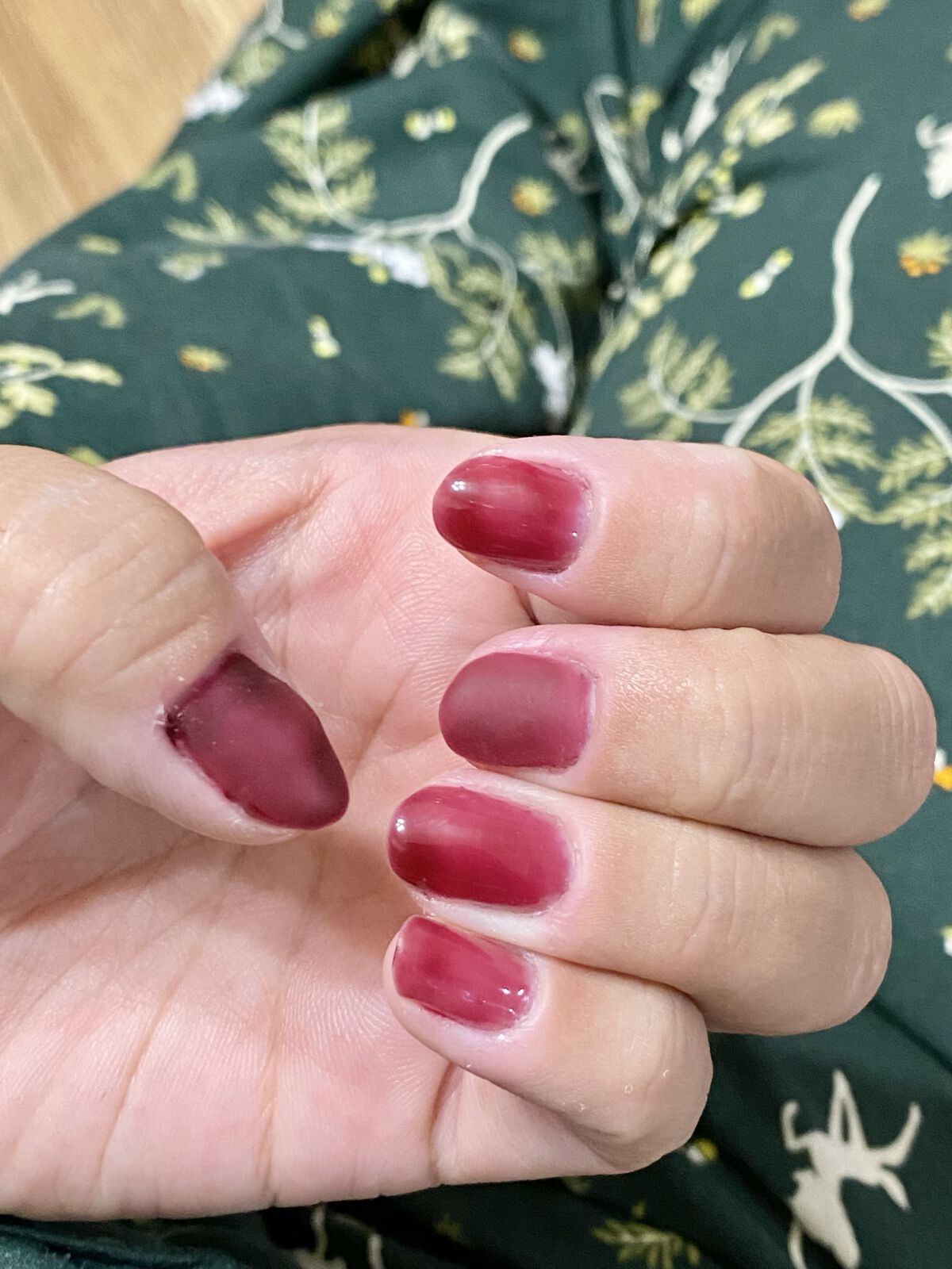 | ⚠️このトップジェルは一回で結構分厚く濡れるけど、厚すぎると硬化時の指に伝わる熱がすごいので薄く塗るのがおすすめ! | 詳細を見る |