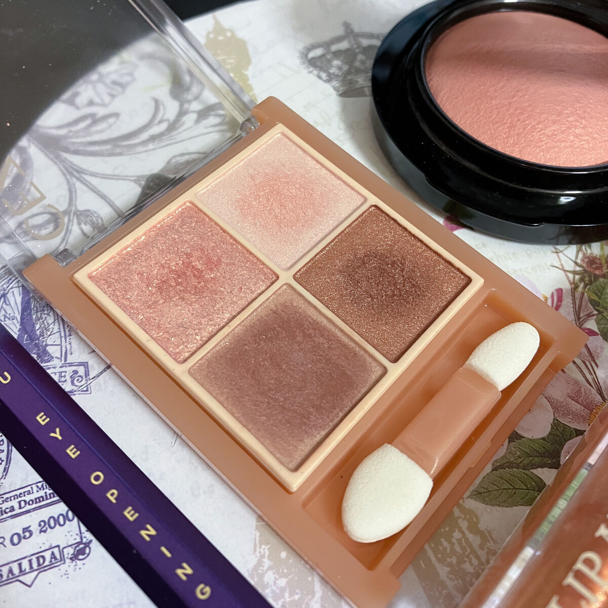 - ラメ・パール・マット3質感の4色アイシャドウ。 肌馴染みの良いベージュを基調としたカラー。ラメ・パール・マットの3質感を重ねて、自然にまぶたを強調し奥行のある大きな目元へ。 しっとり溶け込むような柔らかなパウダーなので、スルスル伸びてまぶたにピタッと密着。保湿成分(スクワラン・ホホバ種子油)配合。