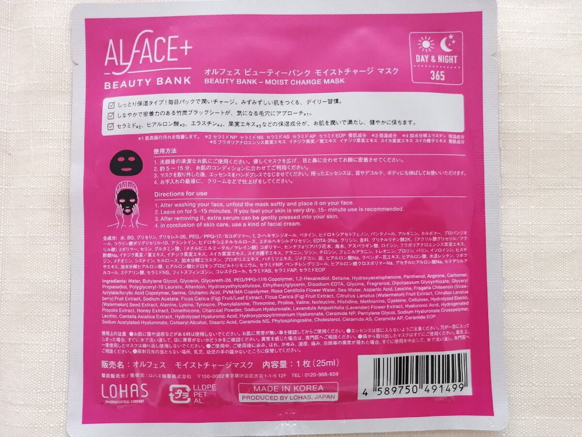 ALFACE+ ピュアブラック アクアモイスチャー シートマスク | 224円 |