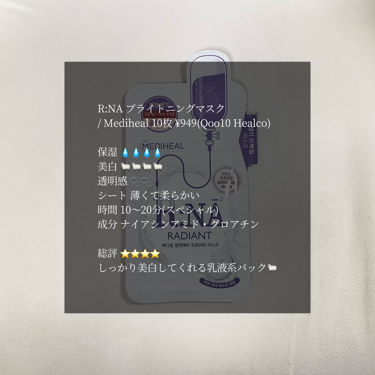 CICA VITALはデイリー使いしまくってるぐらいお気に入り。さっぱりしてて良いよ🍋(ゆず) あととにかくおまけがたくさんあって豪華!! ニキビパッチを潰れかけニキビに半日貼ってたら、膿出てきて表面の凹凸無くなったのびっくりした。 今回は美白特化の3つを選んでみた! どんな季節でも使いやすいのはIPI、高保湿なのでこれからの時期に推せるのはRNAかな。 Healcoさんはレビュー数も多めで正規品が来るから、多分大丈夫だと思うよ🙆🏻♀️