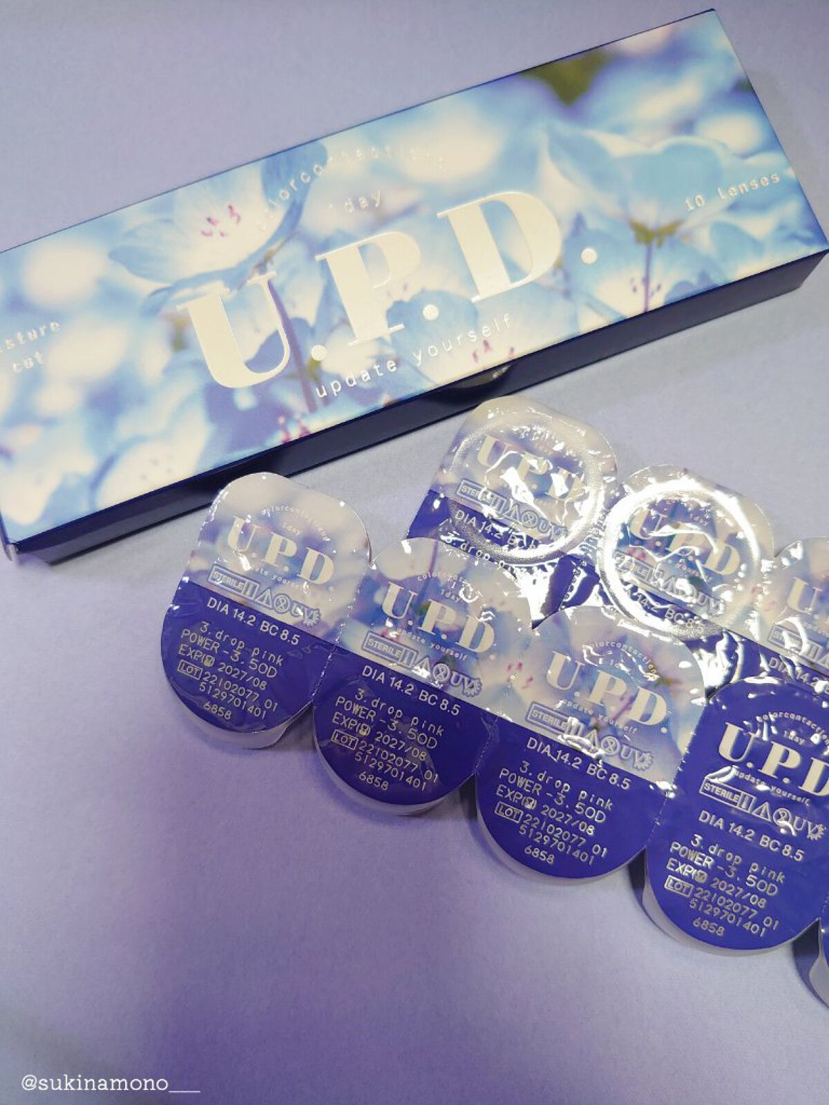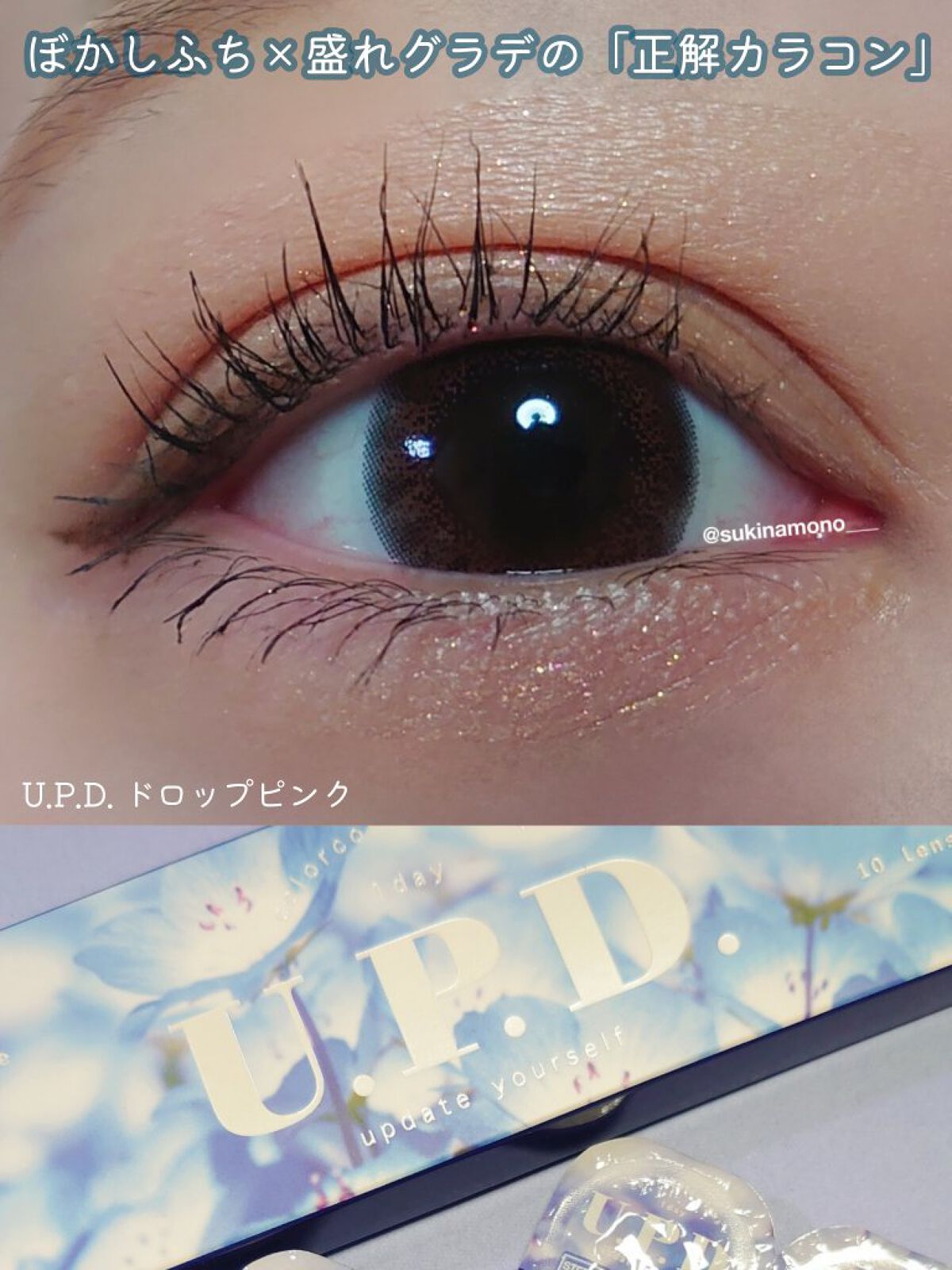 - 「毎日、過去イチかわいいわたし」ナチュラルだけどちゃんと盛れる"正解カラコン"U.P.D. (アプデ)。 もっと可愛く自分をアップデートして欲しいという思いを込めて作られたカラコンです。 ナチュラルな気分の時も盛りたい時も使える大人デザインとサイズ感がちょうど良いデザイン。 カラーコンタクトレンズの不適正使用による眼障害の危険性等などがあります。 ●コンタクトレンズは高度管理医療機器です。不十分な洗浄・消毒など不適切なケアや、長時間・交換期間を超えた装用により、アレルギー性結膜炎、角膜感染症、角膜潰瘍等の重篤な眼障害が発生する危険性があります ●ご使用前に取扱説明書を確認してください 使用上の留意事項 ●眼科医院等を受診してからお求めください ●眼に異常を感じたら直ちにレンズ使用を中止し、お近くの眼科等で診察を受けてください ●医師の指示にしたがってご使用ください ●コンタクトレンズを装用する場合、自覚症状がなくても、眼科医院等での定期検査を受けてください ●レンズに不具合がある場合は使用しないでください
