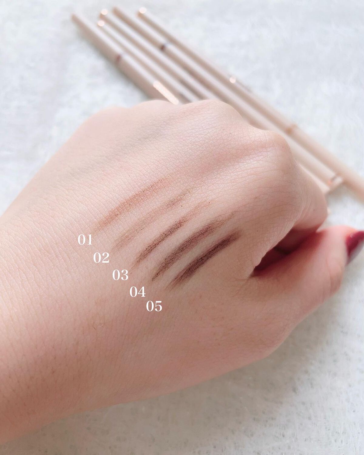 細く細く、自由自在に描ける楕円型スリムブロウ。 一本一本繊細に描けるので扱いやすい✌️ 洗練されたアッシュブラウンで落ち着いた印象に仕上がるのが好み。元の眉毛の色や量とも相性が良く、めちゃくちゃ自然な眉毛がかけるのが嬉しい!! ちゃんと色付いてくれるし、これは大当たりすぎる✨️