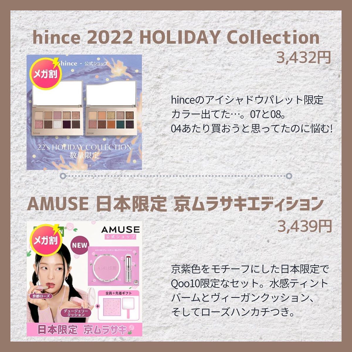 ✼••┈┈••✼••┈┈••✼••┈┈••✼••┈┈••✼ほしいものが多すぎる〜〜!メガ割で揃えたい、間違いないアイパレ9選をつくってみました💗どれもこれも可愛くて粉質もよき😌✨まとめてて気づいたけどスウォッチとかあげてないパレットいっぱいあ...