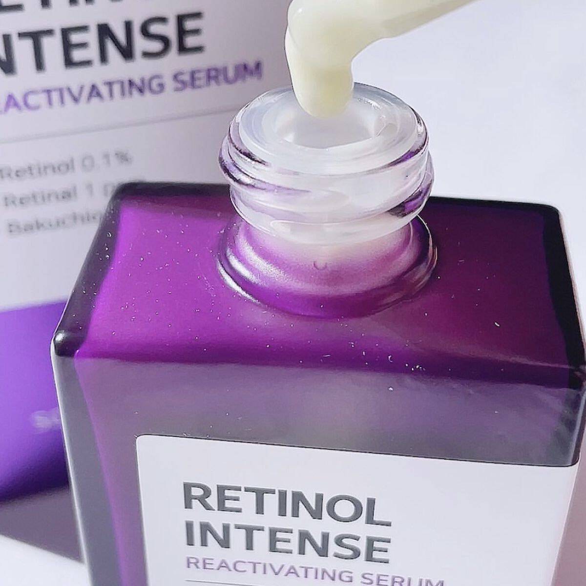 レチノール0.1%&バクチオール5,000PPM(整肌成分)が配合されている美容液💜 イブヴィーガン認証済みで、レチノールA反応が心配な方も使いやすいと思います◎ スポイトタイプだから量の調整がしやすくパープル×英字のボトルがかっこいい。