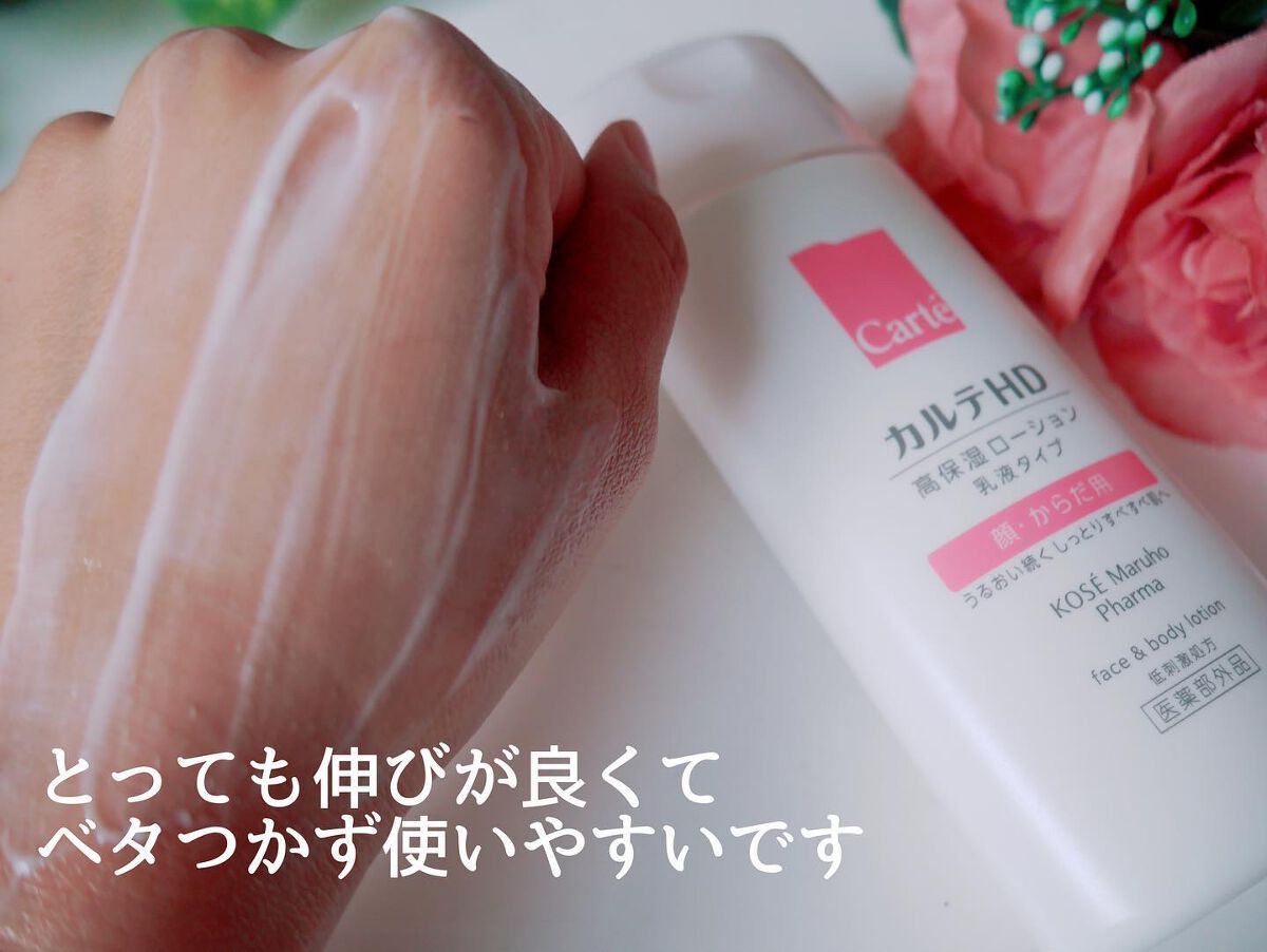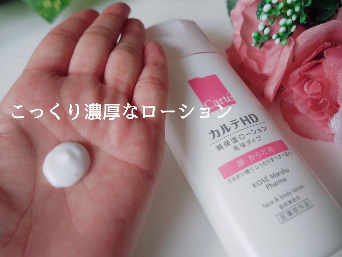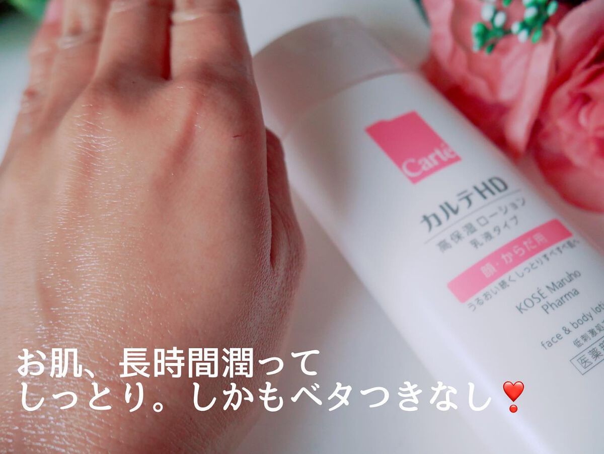 - 【高保湿フェイス&ボディローション】 顔にもからだにも。しっとりやわらか肌つづく。 信頼の保水有効成分「ヘパリン類似物質HD※」配合、低刺激処方の高機能フェイス&ボディローションです。 ヘパリン類似物質HDが、気温・湿度の変化で乾燥しやすいからだの肌のうるおい構造(角層ラメラ)を立て直し、しっとりやわらか肌に導きます。 2種のこだわりオイル配合で、しっとりするのにべたつかず、なめらかにのびひろがる使用感。敏感な肌でもまさつによるストレスがなく、全身をうるおいで満たします。 カルテHDシリーズとしては初めてお子さま(3歳以上)にもお使いいただける商品。 ・ボトルタイプ(220mL) ・ポンプタイプ(410mL) ・つめかえ用(370mL)の3種でラインアップ。 ご自身の保湿に、ご家族や大切なかたの保湿に。みずみずしくなめらかなうるおいが全身を包み込むフェイス&ボディローションです。 ※保水有効成分ヘパリン類似物質のこと <販売名:HD フェイスボディL>