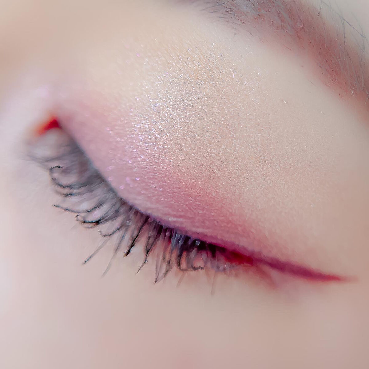 ピンクにグレージュも良いですね👌💗 今日は可愛らしい感じにしてみました💕 上下瞼黒目〜目頭側にラメを塗ってキラキラさせております🤩 目尻はマットのピンクを濃いめに重ねて💗 グレージュのアイライナーと相性◎
