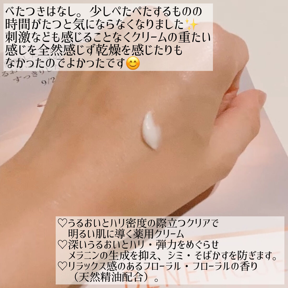 | こっくりとしたクリームですが軽い感触で肌に広がって馴染みがいいのがポイント‼️ | 詳細を見る | ||