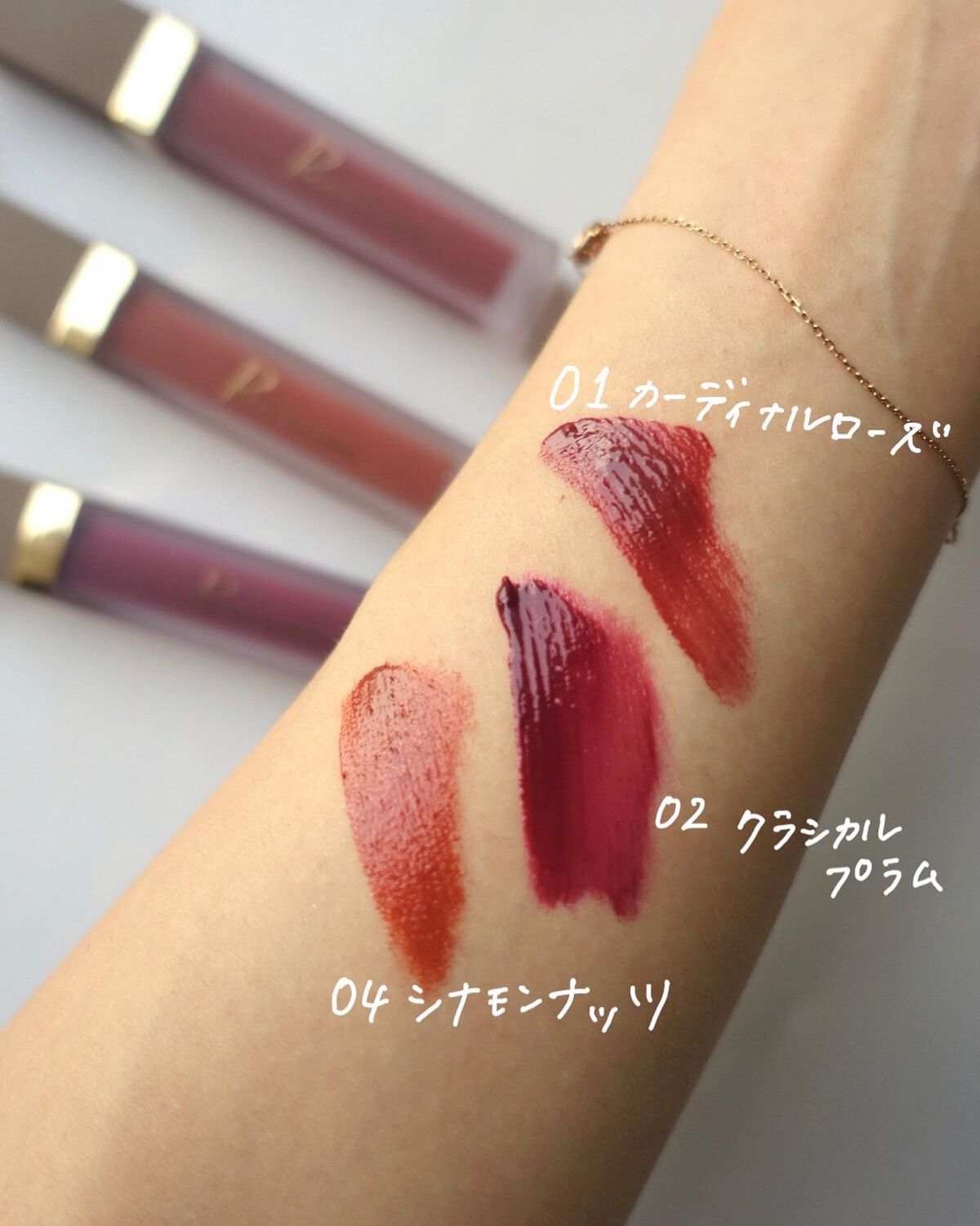 - <01 カーディナルローズ> 水、ダイマージリノール酸ダイマージリノレイル、ジフェニルジメチコン、ジフェニルシロキシフェニルトリメチコン、オクチルドデカノール、トリイソステアリン酸ポリグリセリルー2、ラウロイルグルタミン酸ジ(フィトステリル/オクチルドデシル)、ダイマージリノール酸(フィトステリル/イソステアリル/セチル/ステアリル/ベヘニル)、BG、水添ポリイソブテン、グリセリン、セテスー10、エタノール、セチルPEG/PPGー10/1ジメチコン、(アクリル酸ヒドロキシエチル/アクリロイルジメチルタウリンNa)コポリマー、イソヘキサデカン、フェノキシエタノール、メチルパラベン、ポリソルベート60、トコフェロール、エチルパラベン、デヒドロ酢酸Na、リン酸2Na、リン酸Na、シリカ、シメチコン、ハチミツ、スクワラン、ステアリン酸ソルビタン、ステアリン酸グリセリル、オレイン酸ポリグリセリルー10、セルロースガム、ヒアルロン酸Na、ローズマリー葉エキス、(+/ー)酸化鉄、酸化チタン、アクリレーツコポリマーアンモニウム、赤226、赤227、黄4、ポリアスパラギン酸Na、水酸化Al、PVP、キサンタンガム、EDTAー2Na、青1 <02 クラシカルプラム> 水、ダイマージリノール酸ダイマージリノレイル、ジフェニルジメチコン、ジフェニルシロキシフェニルトリメチコン、オクチルドデカノール、トリイソステアリン酸ポリグリセリルー2、ラウロイルグルタミン酸ジ(フィトステリル/オクチルドデシル)、ダイマージリノール酸(フィトステリル/イソステアリル/セチル/ステアリル/ベヘニル)、BG、水添ポリイソブテン、グリセリン、セテスー10、エタノール、セチルPEG/PPGー10/1ジメチコン、(アクリル酸ヒドロキシエチル/アクリロイルジメチルタウリンNa)コポリマー、イソヘキサデカン、フェノキシエタノール、メチルパラベン、ポリソルベート60、トコフェロール、エチルパラベン、デヒドロ酢酸Na、リン酸2Na、リン酸Na、シリカ、シメチコン、ハチミツ、スクワラン、ステアリン酸ソルビタン、ステアリン酸グリセリル、オレイン酸ポリグリセリルー10、セルロースガム、ヒアルロン酸Na、ローズマリー葉エキス、(+/ー)酸化鉄、酸化チタン、アクリレーツコポリマーアンモニウム、赤226、赤227、黄4、ポリアスパラギン酸Na、水酸化Al、PVP、キサンタンガム、EDTAー2Na、青1 <03 サンゴブロッサム> 水、ダイマージリノール酸ダイマージリノレイル、ジフェニルジメチコン、ジフェニルシロキシフェニルトリメチコン、オクチルドデカノール、トリイソステアリン酸ポリグリセリルー2、ラウロイルグルタミン酸ジ(フィトステリル/オクチルドデシル)、ダイマージリノール酸(フィトステリル/イソステアリル/セチル/ステアリル/ベヘニル)、BG、水添ポリイソブテン、グリセリン、セテスー10、エタノール、セチルPEG/PPGー10/1ジメチコン、(アクリル酸ヒドロキシエチル/アクリロイルジメチルタウリンNa)コポリマー、イソヘキサデカン、フェノキシエタノール、メチルパラベン、ポリソルベート60、トコフェロール、エチルパラベン、デヒドロ酢酸Na、リン酸2Na、リン酸Na、シリカ、シメチコン、ハチミツ、スクワラン、ステアリン酸ソルビタン、ステアリン酸グリセリル、オレイン酸ポリグリセリルー10、セルロースガム、ヒアルロン酸Na、ローズマリー葉エキス、(+/ー)酸化鉄、酸化チタン、アクリレーツコポリマーアンモニウム、赤226、赤227、黄4、ポリアスパラギン酸Na、水酸化Al、PVP、キサンタンガム、EDTAー2Na、青1 <04 シナモンナッツ> 水、ダイマージリノール酸ダイマージリノレイル、ジフェニルジメチコン、ジフェニルシロキシフェニルトリメチコン、オクチルドデカノール、トリイソステアリン酸ポリグリセリルー2、ラウロイルグルタミン酸ジ(フィトステリル/オクチルドデシル)、ダイマージリノール酸(フィトステリル/イソステアリル/セチル/ステアリル/ベヘニル)、BG、水添ポリイソブテン、グリセリン、セテスー10、エタノール、セチルPEG/PPGー10/1ジメチコン、(アクリル酸ヒドロキシエチル/アクリロイルジメチルタウリンNa)コポリマー、イソヘキサデカン、フェノキシエタノール、メチルパラベン、ポリソルベート60、トコフェロール、エチルパラベン、デヒドロ酢酸Na、リン酸2Na、リン酸Na、シリカ、シメチコン、ハチミツ、スクワラン、ステアリン酸ソルビタン、ステアリン酸グリセリル、オレイン酸ポリグリセリルー10、セルロースガム、ヒアルロン酸Na、ローズマリー葉エキス、(+/ー)酸化鉄、酸化チタン、アクリレーツコポリマーアンモニウム、赤226、赤227、黄4、ポリアスパラギン酸Na、水酸化Al、PVP、キサンタンガム、EDTAー2Na、青1 <05 カヌレブラウン> 水、ダイマージリノール酸ダイマージリノレイル、ジフェニルジメチコン、ジフェニルシロキシフェニルトリメチコン、オクチルドデカノール、トリイソステアリン酸ポリグリセリルー2、ラウロイルグルタミン酸ジ(フィトステリル/オクチルドデシル)、ダイマージリノール酸(フ