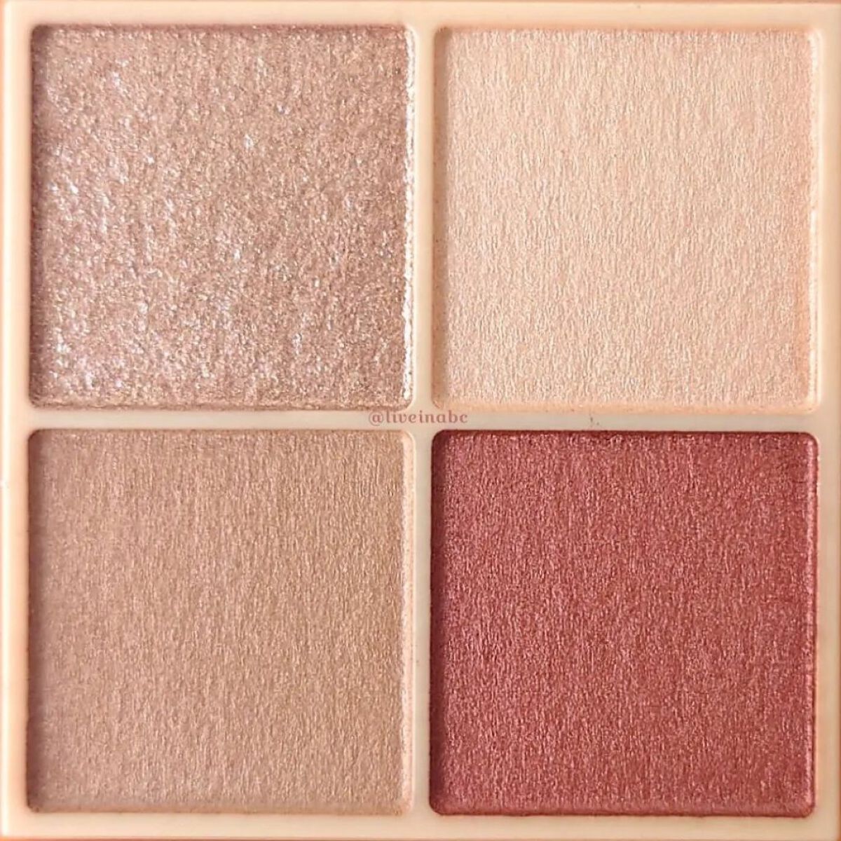 - ラメ・パール・マット3質感の4色アイシャドウ。 肌馴染みの良いベージュを基調としたカラー。ラメ・パール・マットの3質感を重ねて、自然にまぶたを強調し奥行のある大きな目元へ。 しっとり溶け込むような柔らかなパウダーなので、スルスル伸びてまぶたにピタッと密着。保湿成分(スクワラン・ホホバ種子油)配合。
