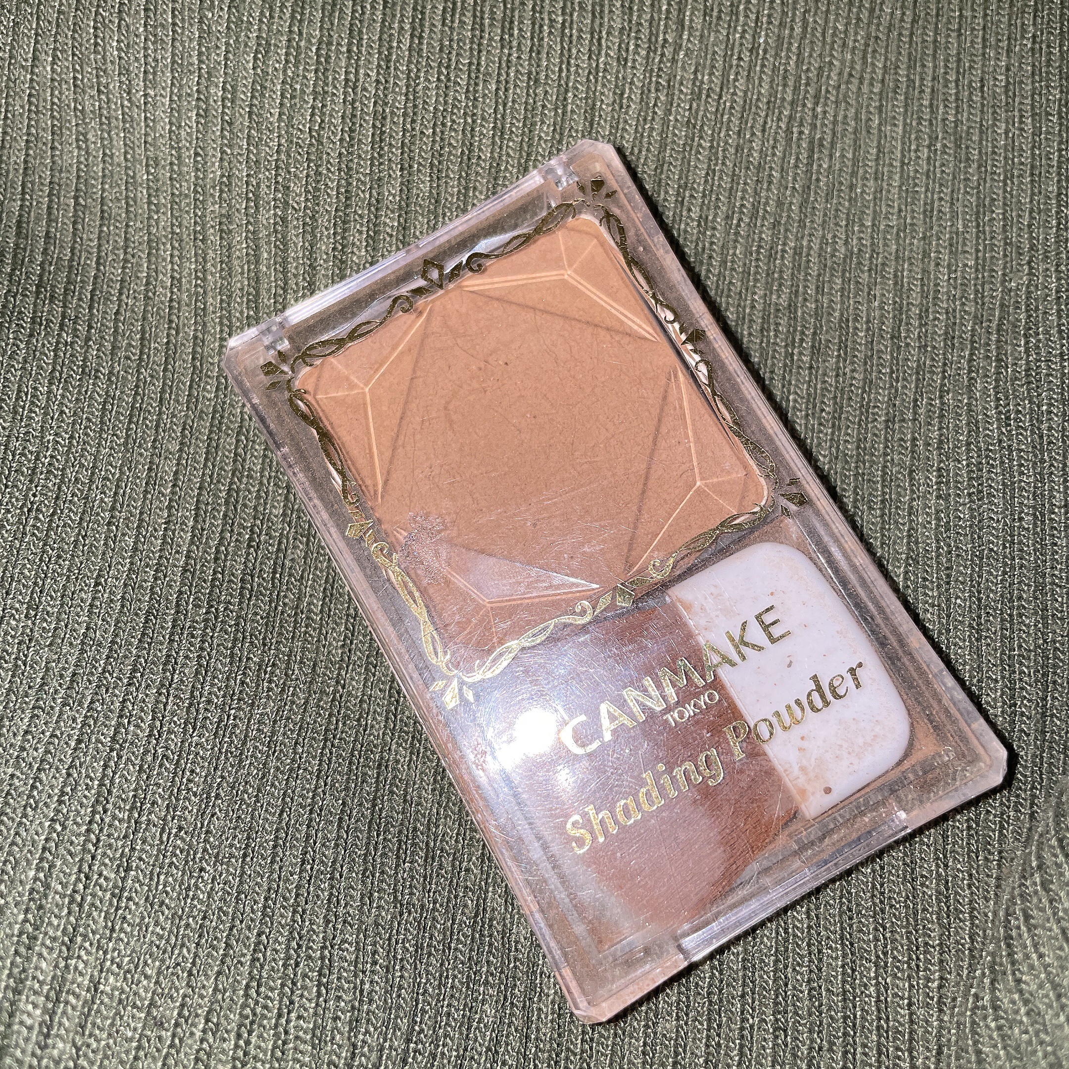 キャンメイクシェーディングパウダー05ムーングレージュというカラーです。これは日本人の肌に合う色だと思います!748円(安すぎ)ドラストで購入できます。 粉質はサラサラで、筆付きなのでめちゃくちゃ楽ちんです。ありがとう。底見えまでに3年かかってるのでコスパもいいです。 色味は本当に肌に馴染みます。自然。ナチュラル。ナチュラルボーン。