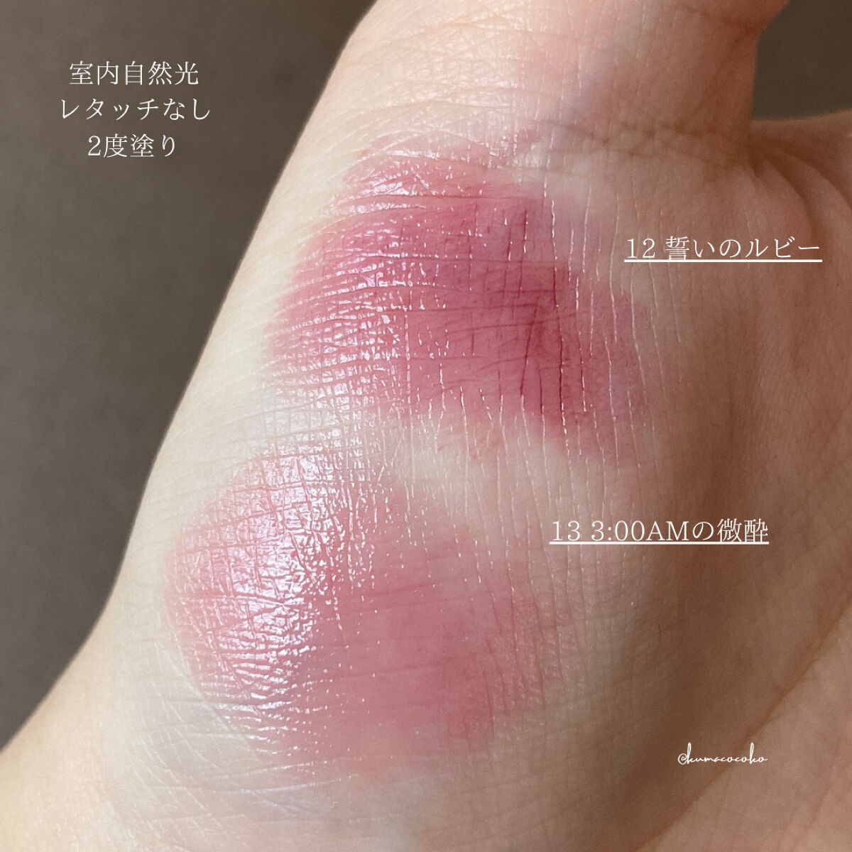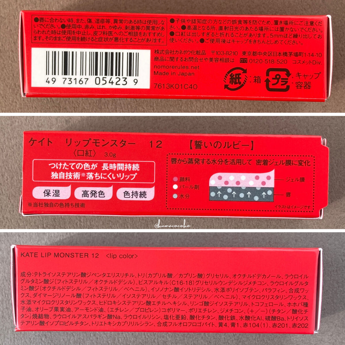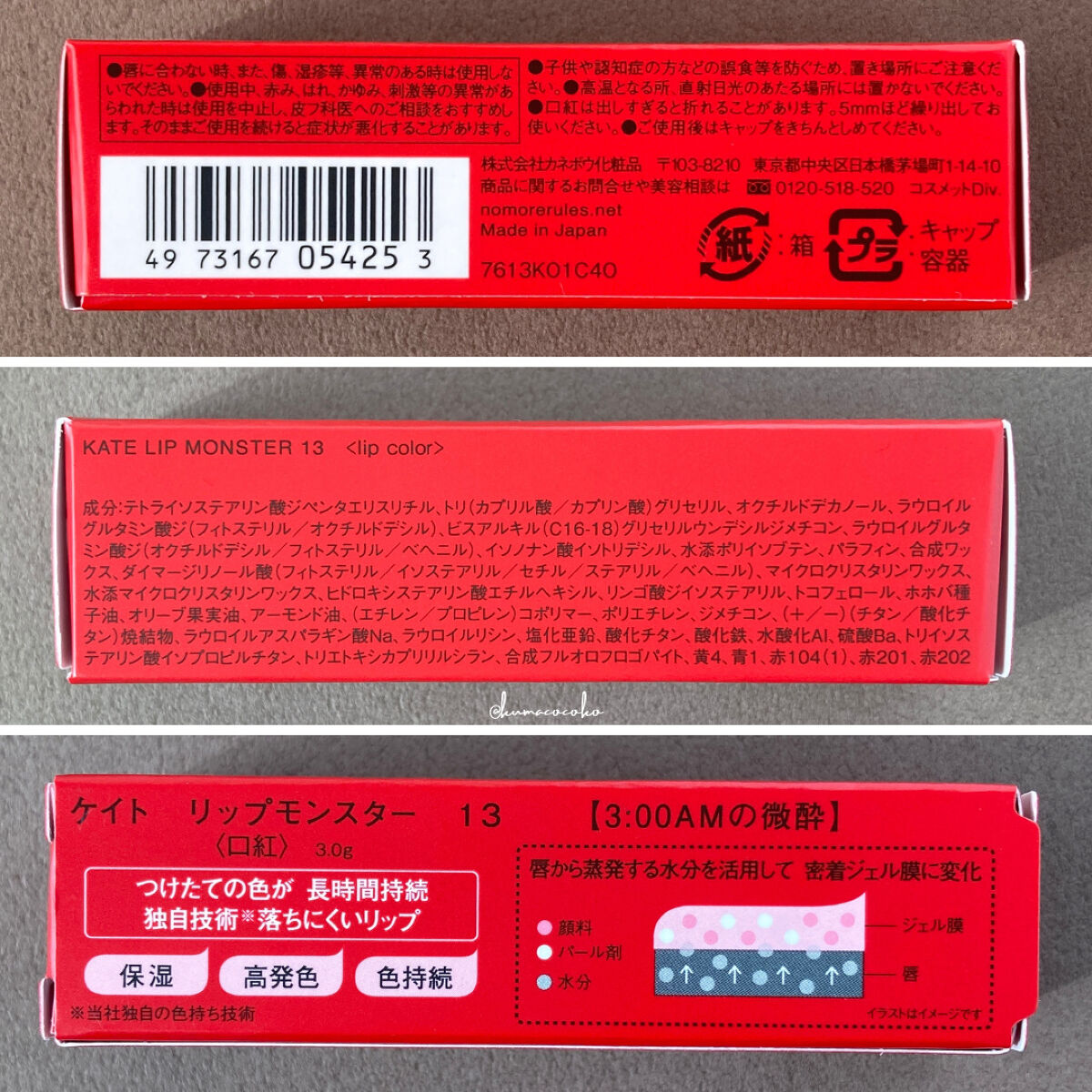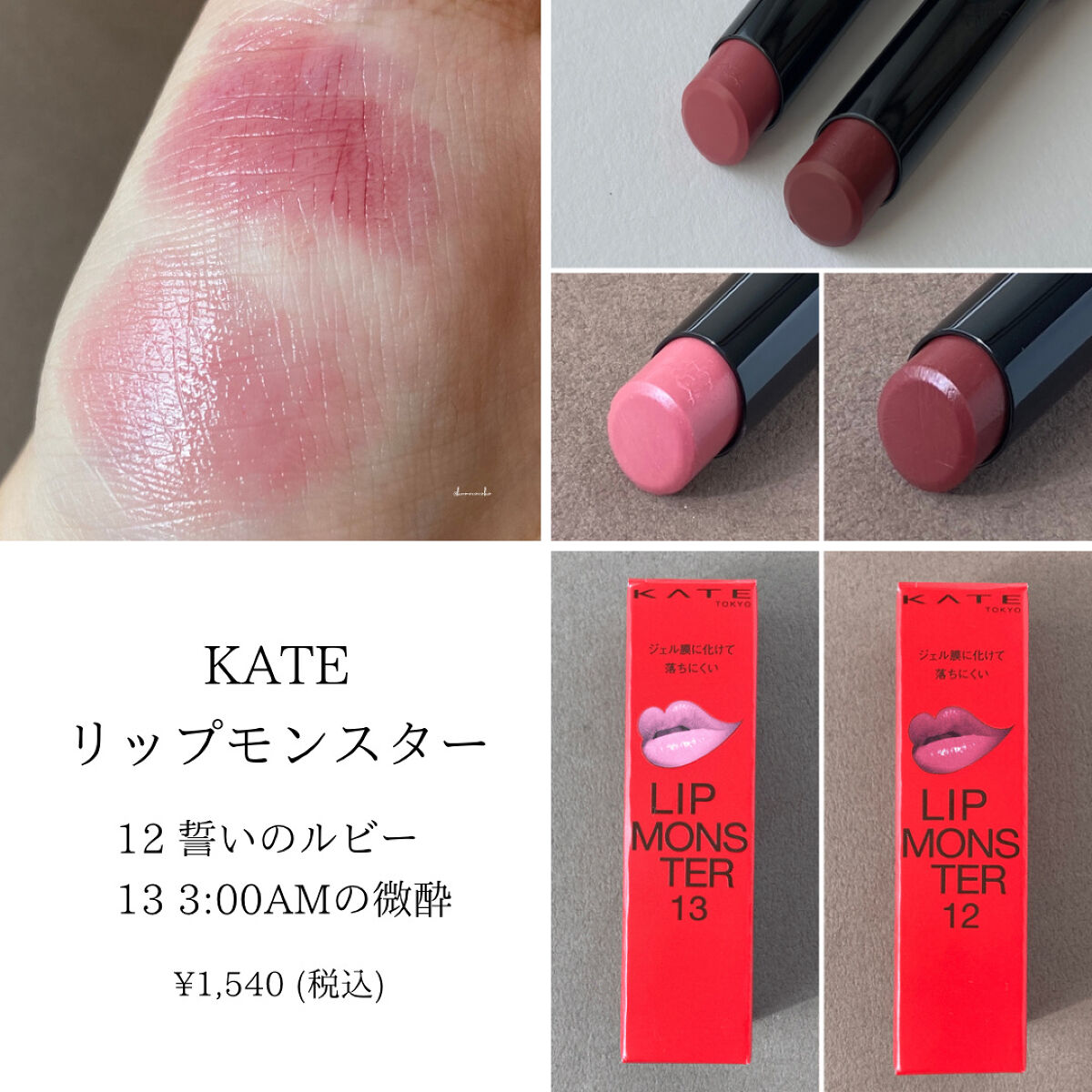 KATEケイトリップモンスター07ラスボス 12誓いのルビー 133:00AMの微酔12番13番無事確保!持ち歩きまくったラスボスの傷だらけパケと比較してまだツルツルですねw廃盤になるわけじゃなくてほんとによかった〜#リプモン #ブルベ ...