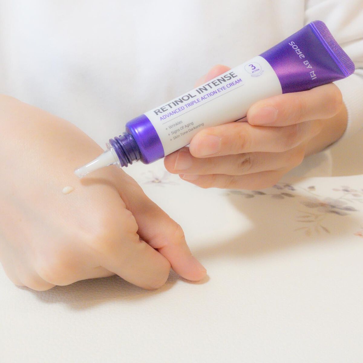サムバイミーは、トラブル肌、敏感肌に注意を注いでいるスキンケアブランド☝️ そんなサムバイミーが作った、レチノール入りのアイクリームって👀⤴️⤴️ レチノール0.1%+グルタチオン配合で、レチノール入りなのに初心者でも使いやすい😆 クリーム色の、滑らかなクリーム状テクスチャー😌 チューブの先が細く、少量も出しやすいし目元ケアしやすい⤴️