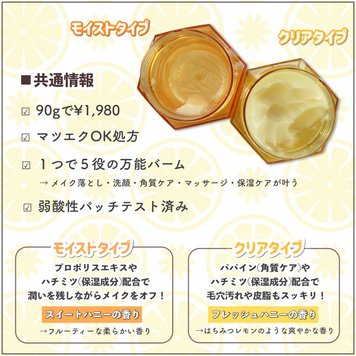 比べでみた!&honeyクレンジングバームクレンジングバームモイストクレンジングバームクリア90g¥1,980しっかりメイクの日には角栓ケアのためにもバームを使ってしっかりメイクを落としたい。&honeyははちみつの甘い香りに癒されながらクレ...
