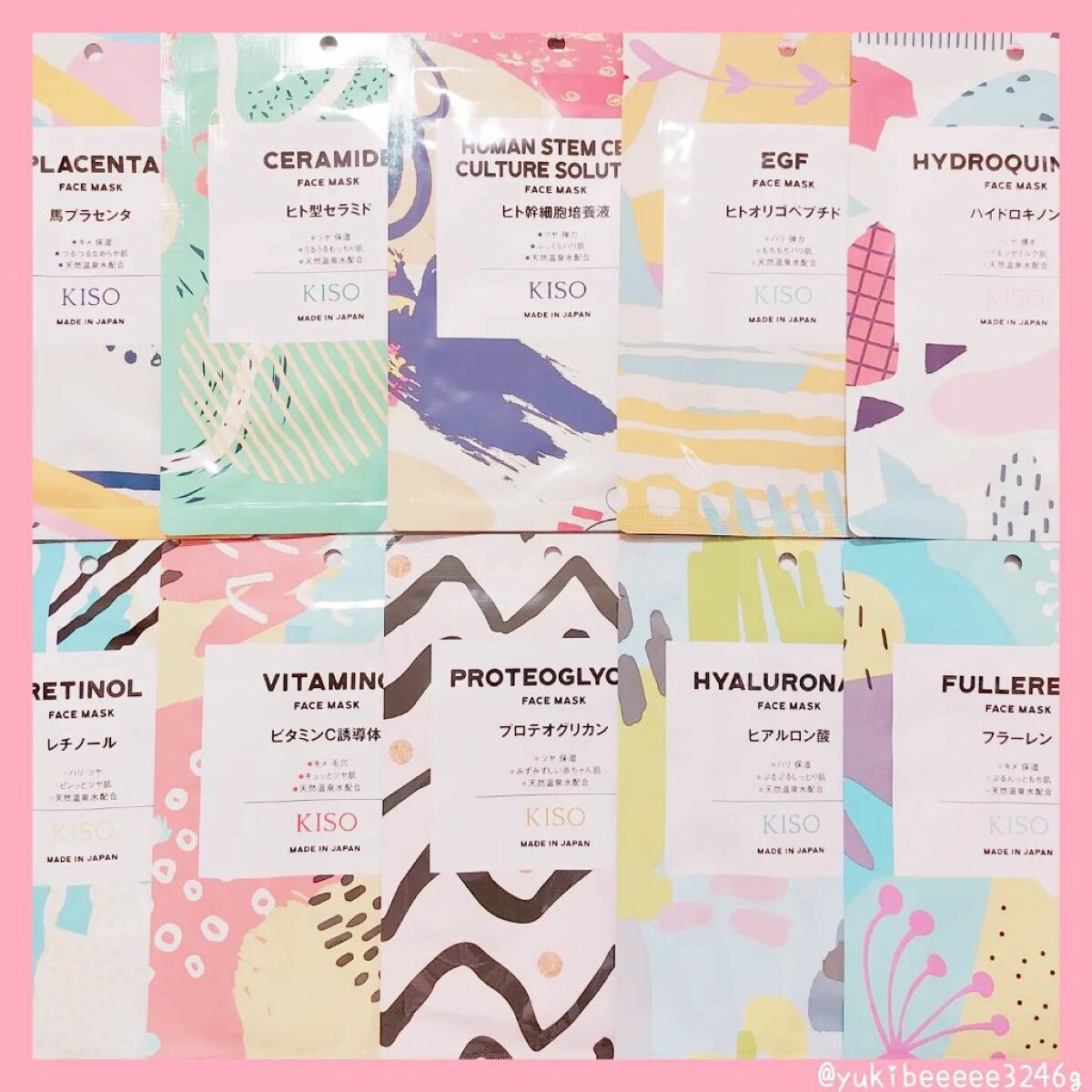 その日の肌の気分で20種類の美容成分から選べる✨個包装フェイスマスク☺️🩷.KISOCARE(基礎化粧品研究所)のフェイスマスク、10種類をいただいて、使ってみたよ💖.それぞれ美容成分となりたい肌に分かれて作られていて、カラフルなパッケージも...