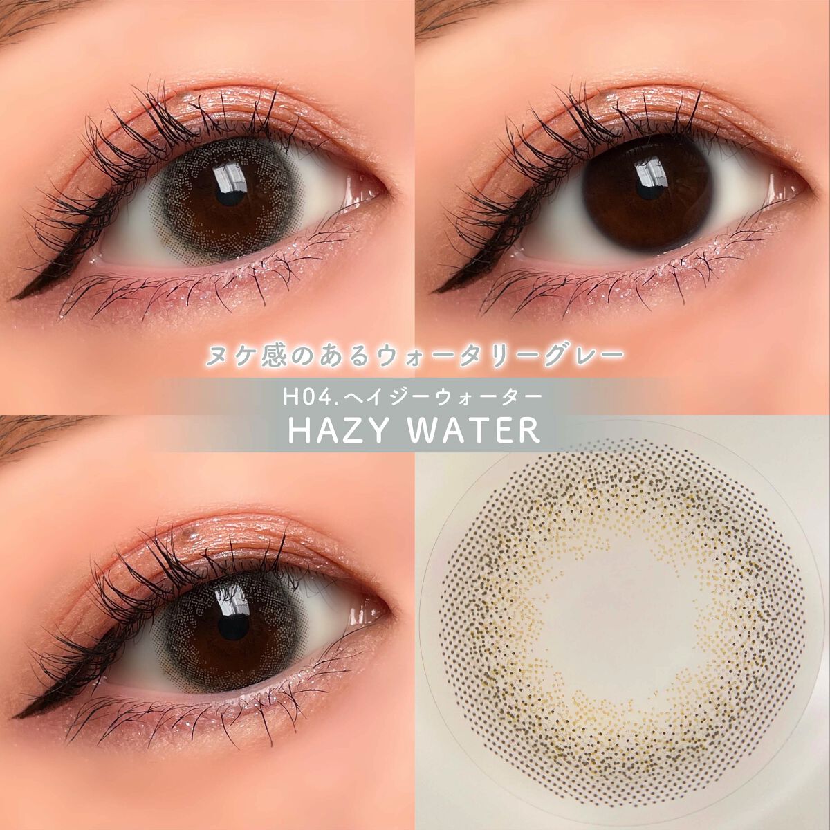 - ナチュラル、キュート、ハーフの3タイプ ナチュラルシリーズ:スリークブラウン・ダスティブラウン・シマーショコラ・スフレコーラル・ハニースキン・セピアミスト・ラスターキャメル・イノセントヘーゼル キュートシリーズ:スウィートティア・モダングランジ・シャイニーリッチ・スムースアーバン ハーフシリーズ:パールグレージュ・リュクスベージュ・シェイドオリーブ 瞳から自分らしさを彩ってほしいという想いから誕生しました。 時に裸眼のように無防備に、時にドラマティックで華やかに。 豊富なバリエーションでどんな瞬間も思い通り輝く瞳に・・。 DIA:14.5mm BC:8.7mm 中心厚:0.07mm( -3.00D ) 含水率:38.5%